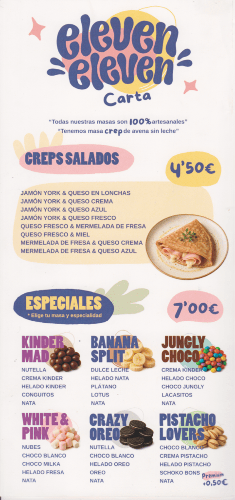 Página de Inicio ⁄ Heladería Crepería Eleven Eleven – Carta