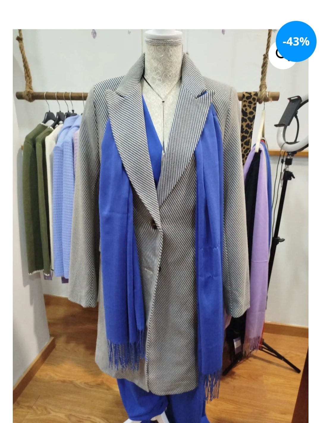 Abrigo de 3/4 en rayas tela dando efecto a saco de rallas crudas combinadas con colores
