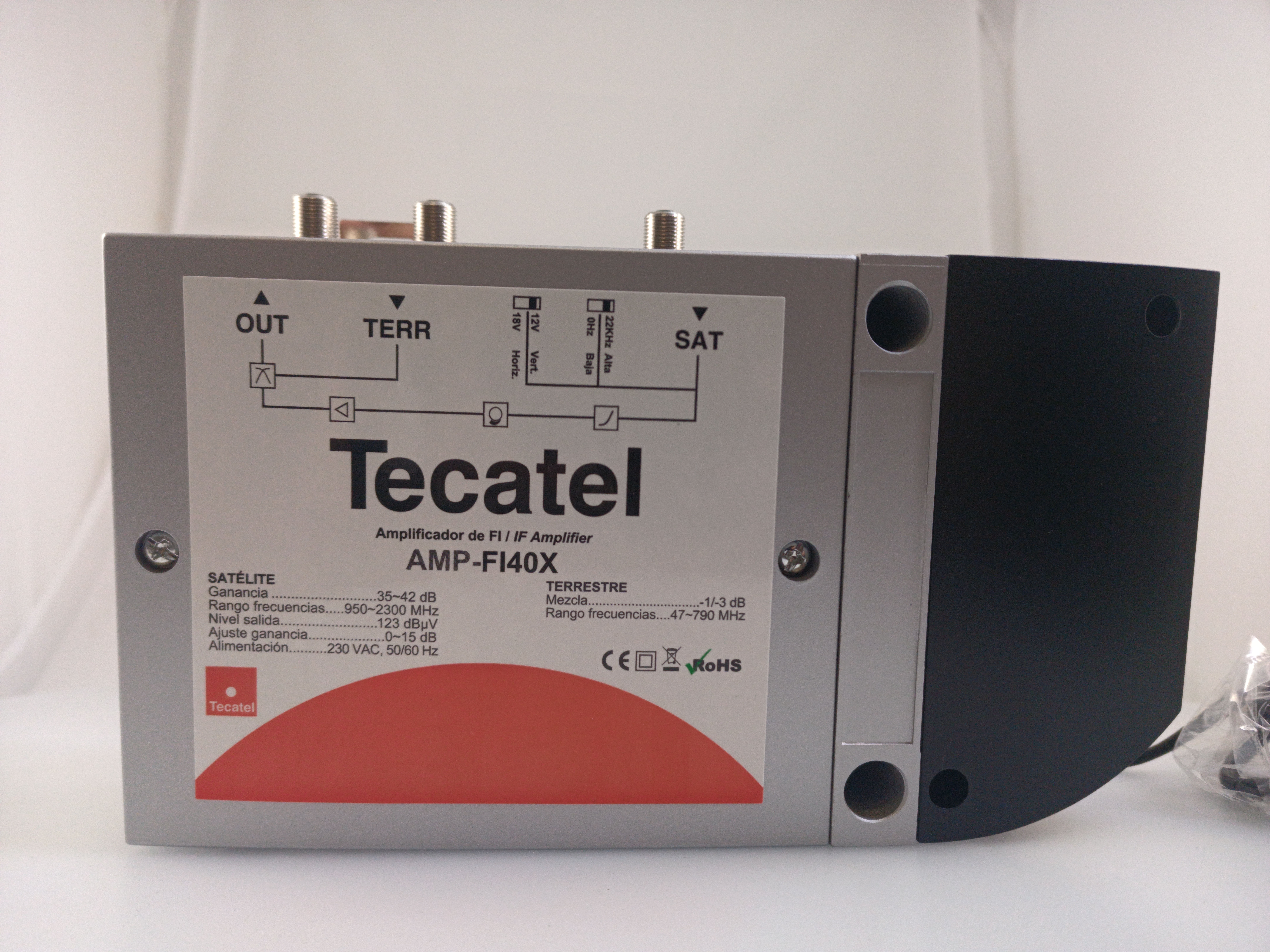 Amplificador de cabecera FI con mezcla de señal terrestre. Rango de frecuencias de 950-2300 MHz. Alimentación LNB seleccionable 13/18V. Protección frente a cortocircuitos. Alto nivel de salida. LTE
