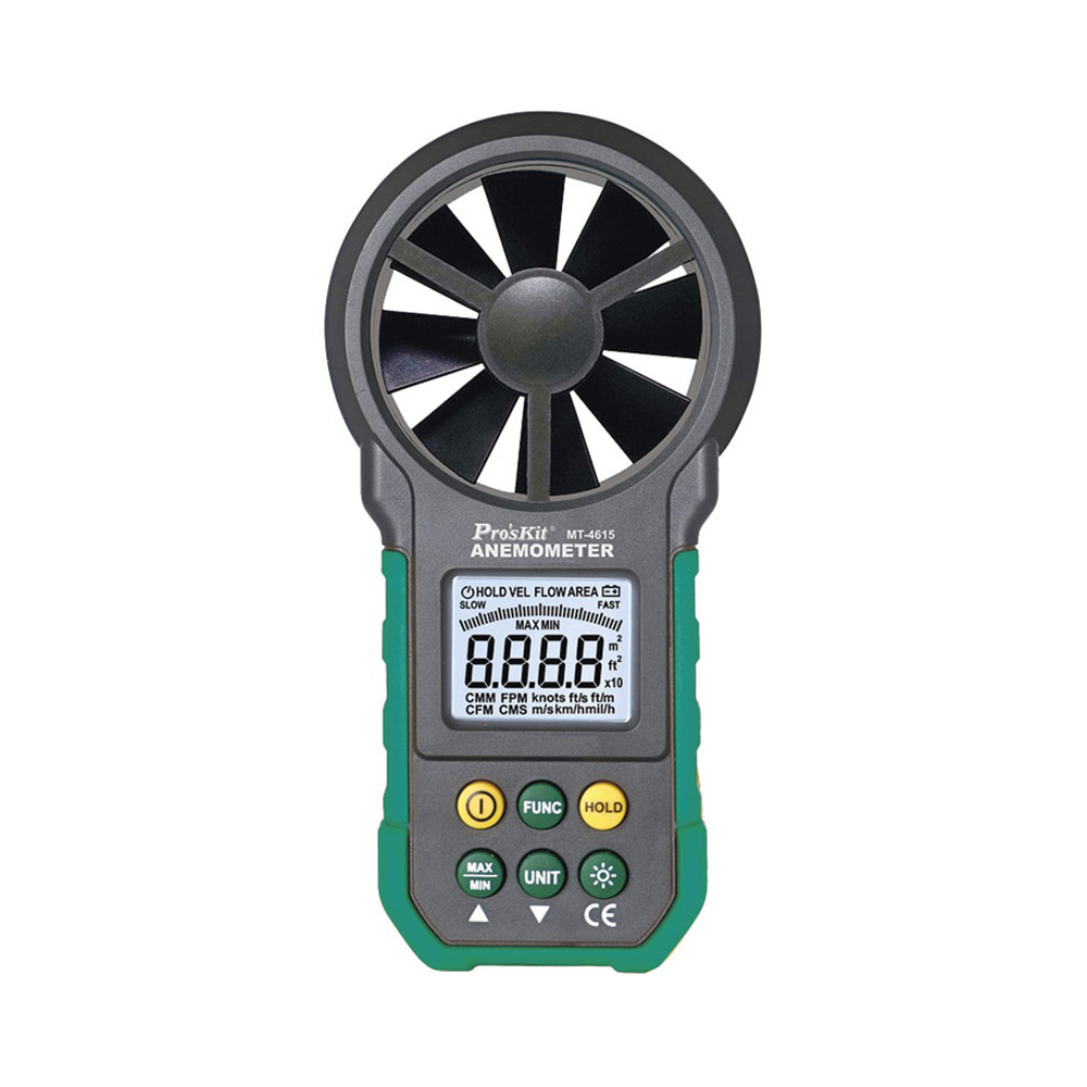 MEDIDOR DE CAUDAL Y VELOCIDAD DEL AIRE. GRAN PANTALLA RETROILUMINADA, RETENCIÓN DE VALORES MÁXIMO Y MÍNIMO, INDICADOR DE BATERÍA BAJA, AUTOAPAGADO, RETENCIÓN DE FECHA DE MEDICIÓN, VARIEDAD DE UNIDADES DE MEDIDA SELECCIONABLE, UNIDADES DE MEDIDA DE VELOCIDAD DEL AIRE: M/S, KM/H, MIL/H, FT/M, FT/S, NUDOS, UNIDADES DE MEDIDA DE VOLUMEN DE AIRE: CMS (M³/S), CMM (M³/MIN), CFM (FT³/MIN), INTERVALO DE MUESTREO: 0,4S. ACCESORIOS INCLUIDOS: BOLSA DE TRANSPORTE Y MANUAL DE USUARIO ALIMENTACIÓN: 1X 6F22(9V) (NO INCLUIDA) PESO: 154G RESOLUCIÓN: 0,01M/S, 0,01FT/S, 0,01KM/H, 0,01NUDOS, 0,01MILLAS/H TAMAÑO: 170 x 85 x 40 mm