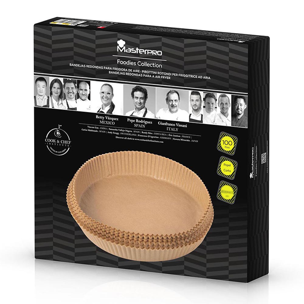 BANDEJA DE PAPEL PARA FREIDORA DE AIRE MEDIDAS Ø26×4,5cm (diametro/alto) BGMP-7604 MASTERPRO BORDE REDONDO COLOR MARRON CONTIENE 100 unid.