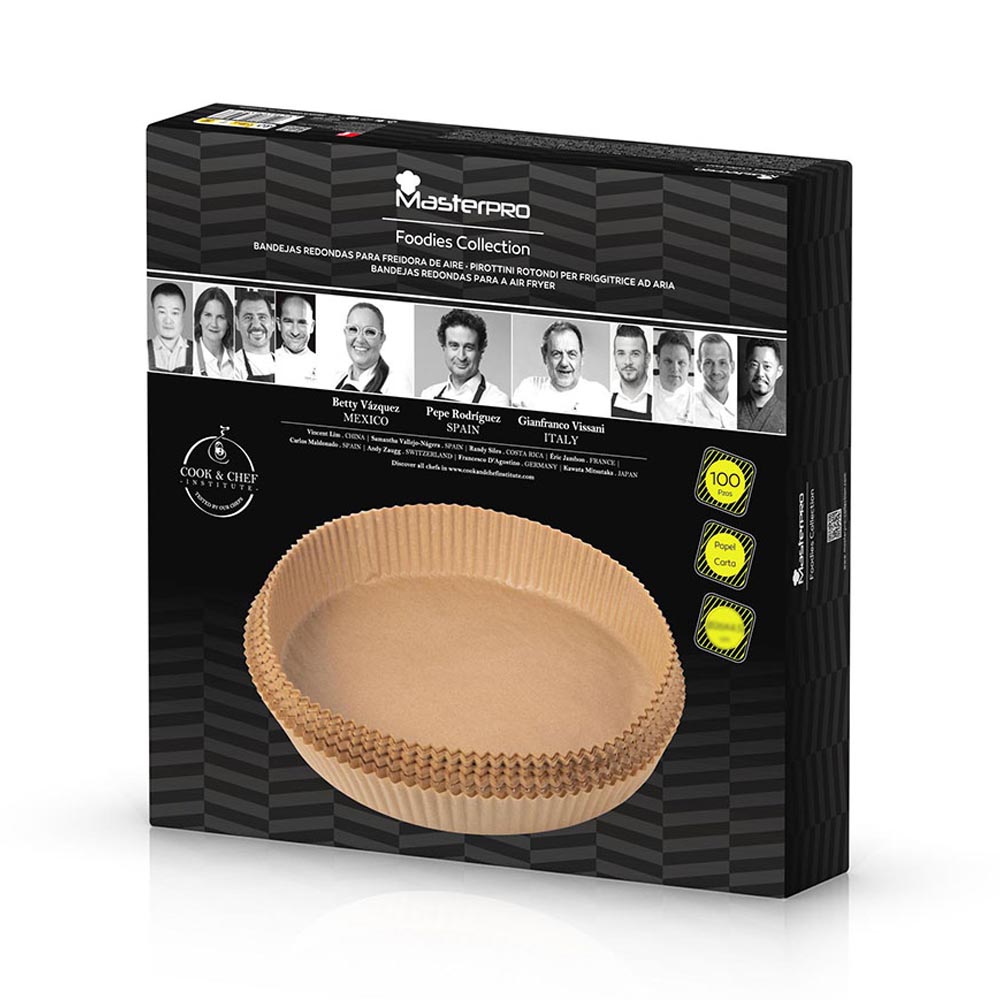 BANDEJA DE PAPEL PARA FREIDORA DE AIRE MEDIDAS Ø20×4,5cm (diámetro/alto) BGMP-7603 MASTERPRO BORDE REDONDO COLOR MARRON CONTIENE 100 unid.