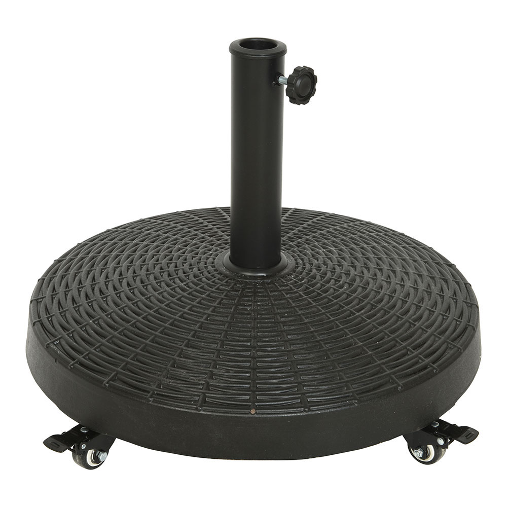 BASE PARA PARASOL CON RUEDAS COLOR NEGRO DIÁMETRO 52cm 841097 CON BASE DE POLIETILENO Y TUBO DE ACERO, PERFECTO PARA TODA LA GAMA DE PARASOLES Y MUY ÚTIL Y FÁCIL DE TRANSPORTAR GRACIAS A SUS CUATRO RUEDAS.