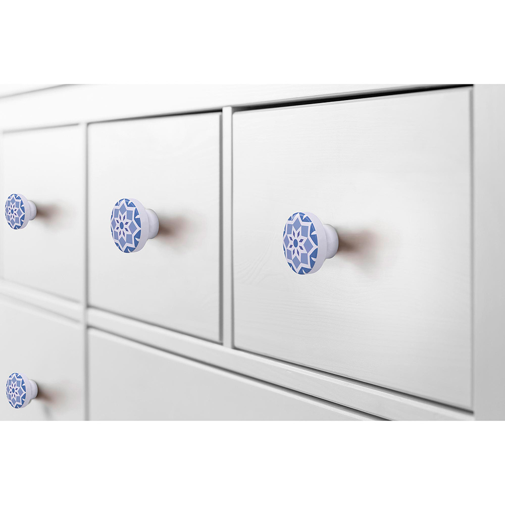 BLISTER CON 4 POMOS REDONDOS PARA MUEBLE DE ESTILO CONTEMPORÁNEO LACADO EN BLANCO Y CON UNA BONITA ILUSTRACIÓN. IDEAL PARA DARLE UN TOQUE DECORATIVO A CUALQUIER TIPO DE ESTANCIA. TIRADOR DE PUERTA O CAJÓN PARA TODO TODO TIPO DE MUEBLES. Ø38mm. FABRICADO EN MADERA HAYA PROVENIENTE DE MADERA DE BOSQUES SOSTENIBLES EN ACABADO AZUL. FÁCIL INSTALACIÓN CON TORNILLOS DE ROSCA DE MÉTRICA M4 INCLUIDOS. DIMENSIONES: Ø38x22mm (diametro/fondo). INCLUYE 4 unid. REI