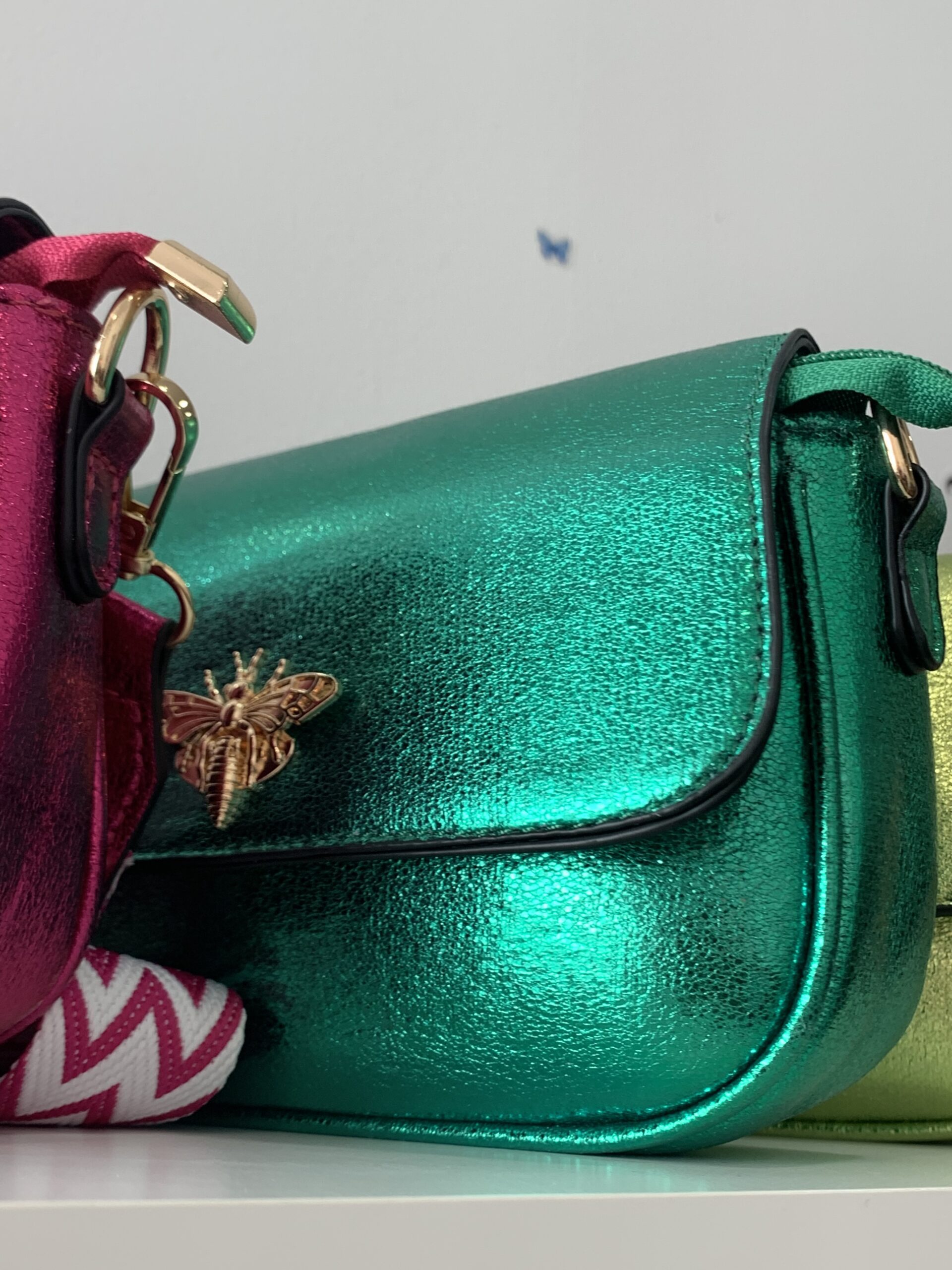 Bolso de colores con brillos de la libélula y con su cuerda de diseños para el hombro