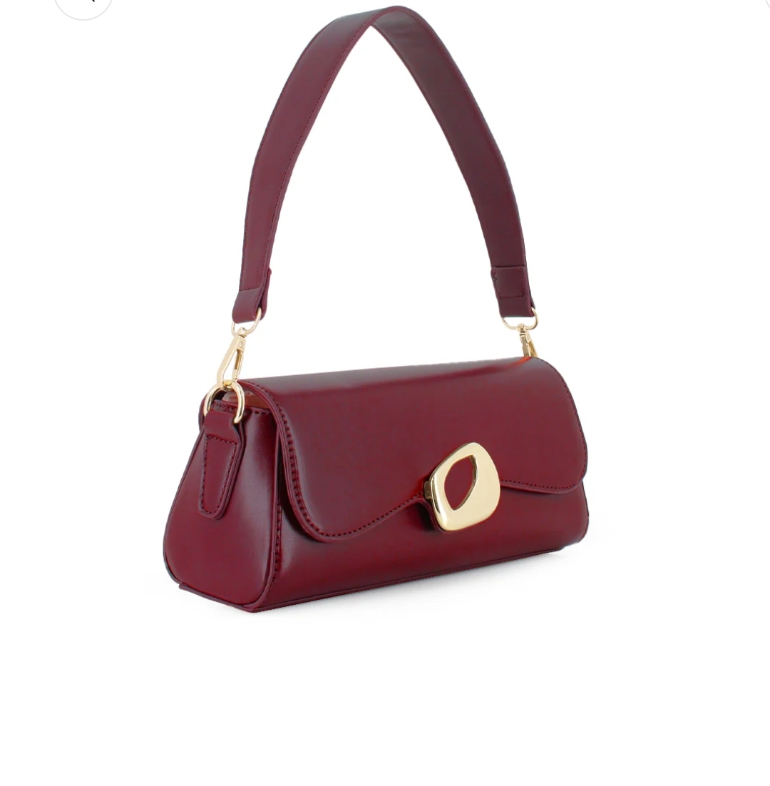 Bolso hecho en piel sintetica color burdeos o negro o marron.