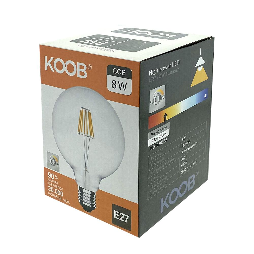 Bombilla LED con regulación de intensidad con 4 filamentos COB de 2W cada uno.