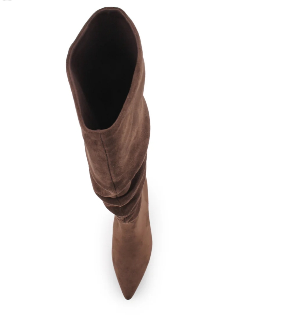 Botas en serraje sintetica color marron o en piel sintetica en color negro.