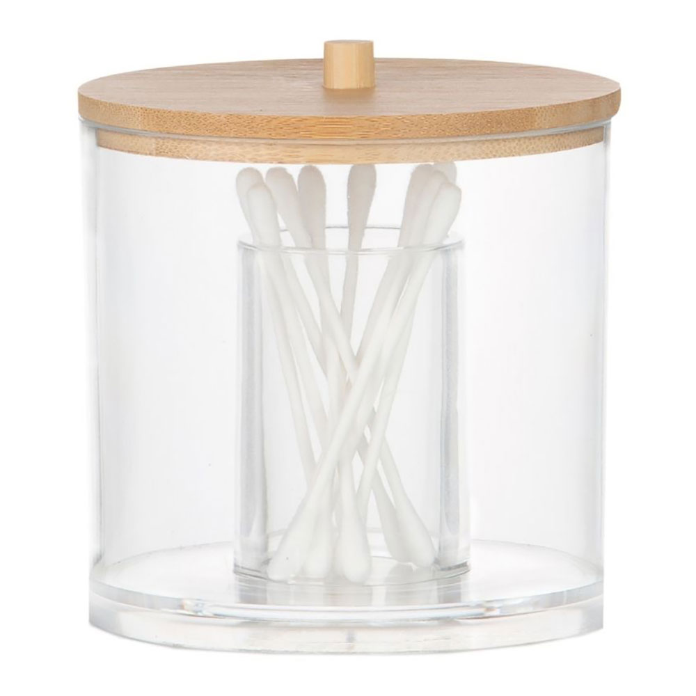 BOTE DE BAÑO ORGANIZADOR ACRÍLICO Ø9x9cm (diámetro/alto) BA72111 ANDREA HOUSE. BOTE ORGANIZADOR DE PLÁSTICO Y BAMBÚ PARA CUARTO DE BAÑO