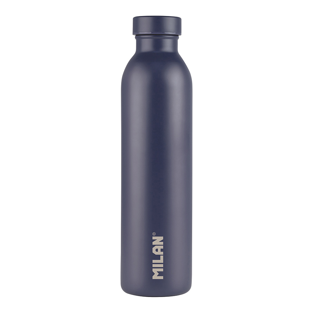 BOTELLA ISOTÉRMICA DE ACERO INOXIDABLE 304 591ml AZUL MARINO, EDICIÓN SUNSET MILAN.CAPACIDAD: 591ml. AISLAMIENTO AL VACÍO DE DOBLE CAPA QUE ELIMINA LA CONDENSACIÓN Y PERMITE QUE LA PARTE EXTERIOR MANTENGA LA TEMPERATURA AMBIENTE. MANTIENE LA TEMPERATURA DEL CONTENIDO INTERIOR (HASTA 12 H LÍQUIDOS CALIENTES Y 24 H LÍQUIDOS FRÍOS). TAPÓN DE ROSCA HERMÉTICO. WE PROTECT: EL USO DE BOTELLAS REUTILIZABLES CONTRIBUYE A REDUCIR EL CONSUMO DE BOTELLAS DE PLÁSTICO DE UN SOLO USO.