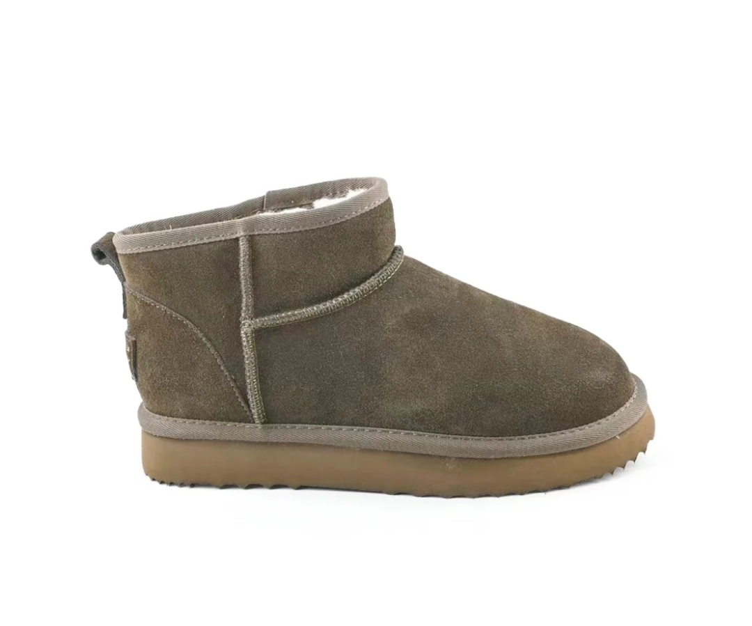 Botines en piel de serraje color camel o kaki oscuro o beige.