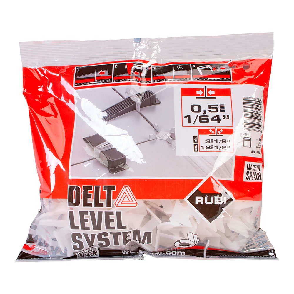 BRIDA 3-12mm 0,5mm DELTA LEVEL SYSTEM (B-100 unid.). EVITA LA CREACIÓN DE CEJAS DE COLOCACIÓN DURANTE LA INSTALACIÓN DE BALDOSAS CERÁMICAS, TANTO EN SUELOS COMO EN PAREDES. EVITA EL MOVIMIENTO DE LAS BALDOSAS DURANTE EL FRAGUADO DEL ADHESIVO Y, DURANTE LA INSTALACIÓN, SE REDUCE EL NÚMERO DE CORRECCIONES EN LA POSICIÓN DE LA PROPIA BALDOSA CERÁMICA. RECOMENDADO PARA FORMATOS DE 30x30cm O MAYORES Y ESPESORES VARIADOS DE HASTA 12, 15 O 20mm, DEPENDIENDO DEL MODELO DE BRIDA QUE SE UTILICE.