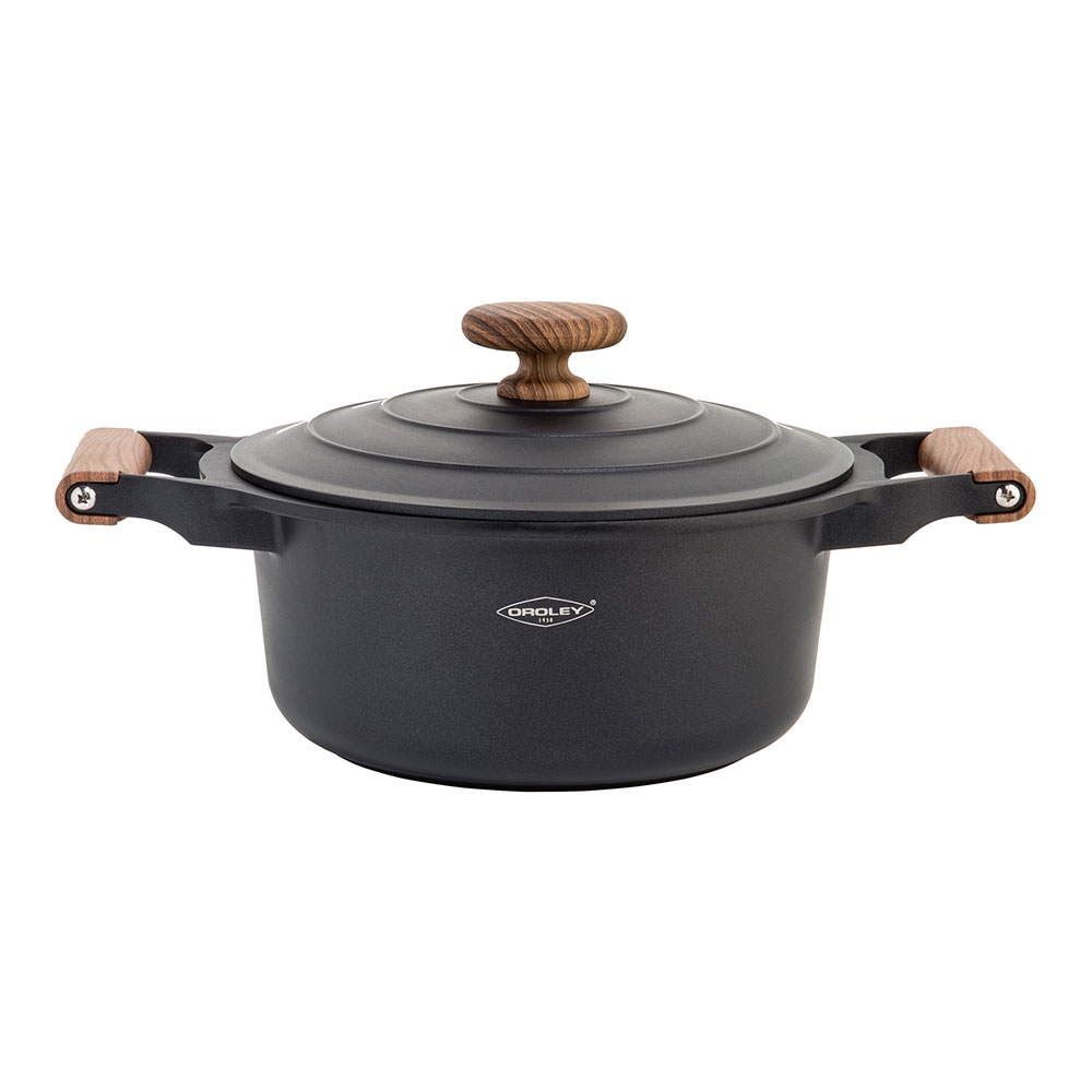 CACEROLA DE ALUMINIO FUNDIDO APTA PARA TODO TIPO DE COCINAS INCLUIDO INDUCCIÓN. ASAS ERGONÓMICAS TIPO SOFT TOUCH. ANTIADHERENTE ECOLÓGICO AMIGABLE CON EL MEDIO AMBIENTE.