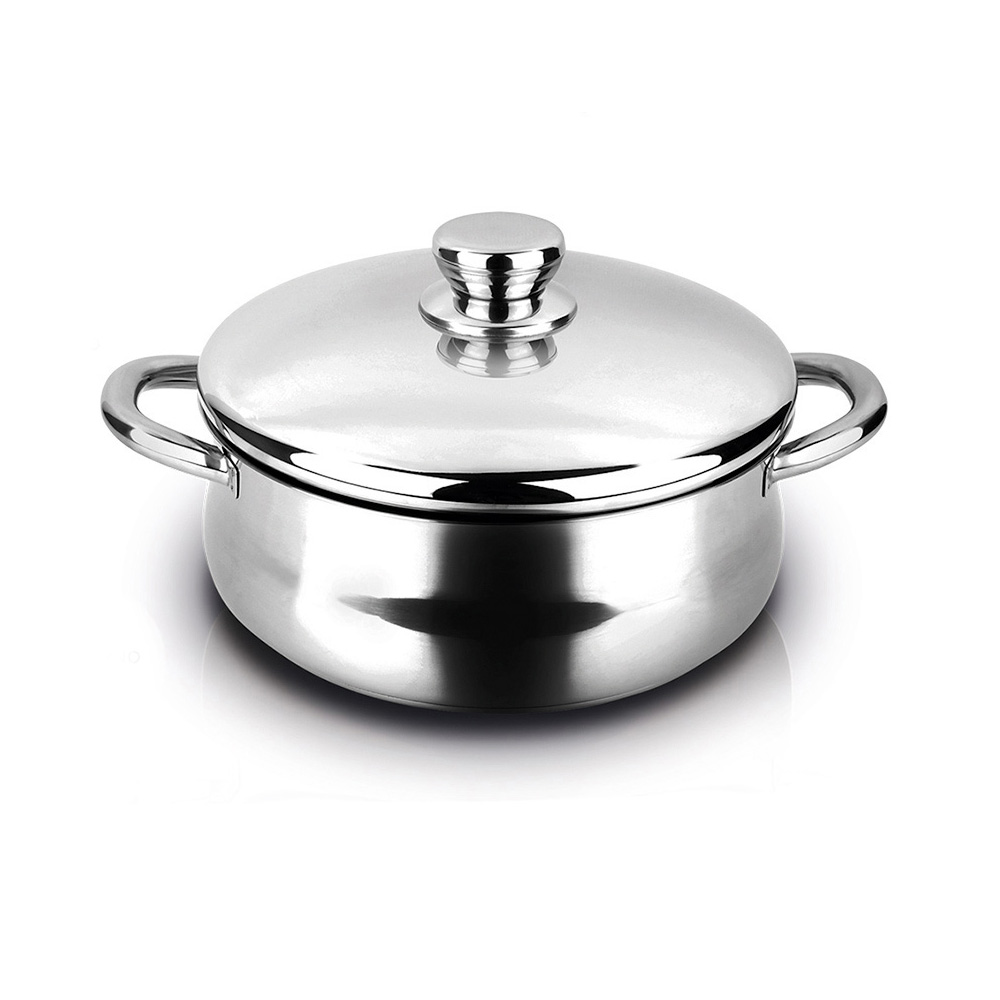 CACEROLA DE ACERO INOXIDABLE SILVERINOX + TAPA Ø20cm 18/10. FONDO TERMODIFUSOR DE 3 CAPAS (ACERO AISI 304+ALUMINIO 3003+ACERO AISI 430). FORMA BOMBEADA. OPTIMA DISTRIBUCIÓN DEL CALOR. TAPAS Y ASAS EN ACERO INOXIDABLE. APTO PARA HORNO. APTO PARA TODO TIPO DE FUEGOS. FAGOR Ø20x9cm (diámetro/alto)