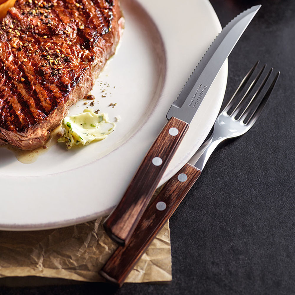 CAJA EXPOSITORA 60 TENEDORES DE MESA POLYWOOD CASTAÑO TRAMONTINA. TENEDORES PARA ASADO TRAMONTINA, DE ACERO INOXIDABLE CON MANGOS CASTAÑOS, DE MADERA, POLYWOOD. LOS MANGOS DE MADERA TRATADA SON RESISTENTES A IMPACTOS Y ALTAS TEMPERATURAS. ANTES DEL PRIMER USO, LAVE BIEN LAS PIEZAS Y SÉQUELAS. PARA MAYOR DURABILIDAD DE LOS CUBIERTOS, SE RECOMIENDA SECARLOS BIEN ANTES DE GUARDARLOS, INCLUSO DESPUÉS DE HABER SIDO LAVADOS EN LAVAVAJILLAS.