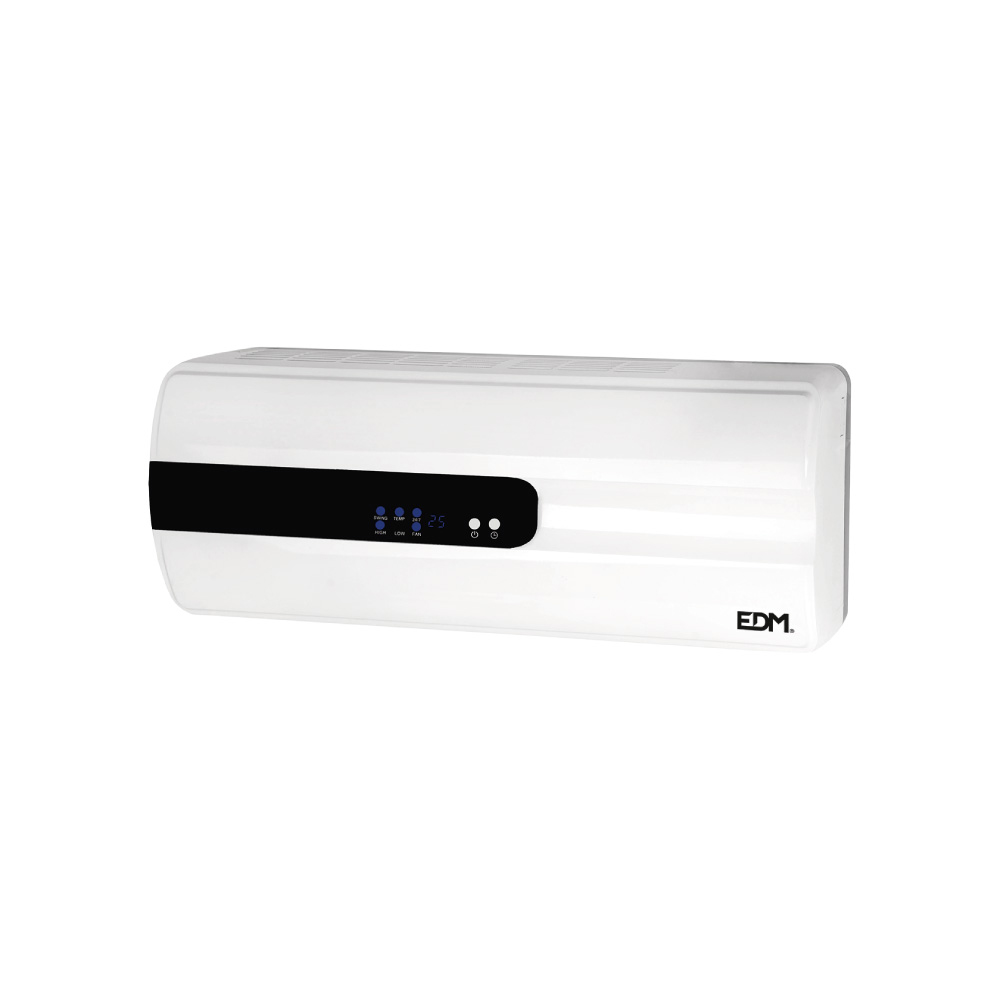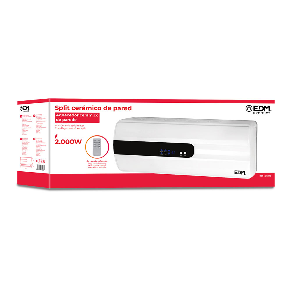 CALEFACTOR SPLIT CERAMICO – POTENCIA: 1000-2000W CON MANDO DISTANCIA – 2 POSICIONES DE AJUSTE DE CALOR – POSICION DE AIRE FRESCO – PROTECCION CONTRA EL SOBRECALENTAMIENTO – DIMENSIONES: 57x14x22cm (ancho/fondo/alto) – 240-240V – EDM
