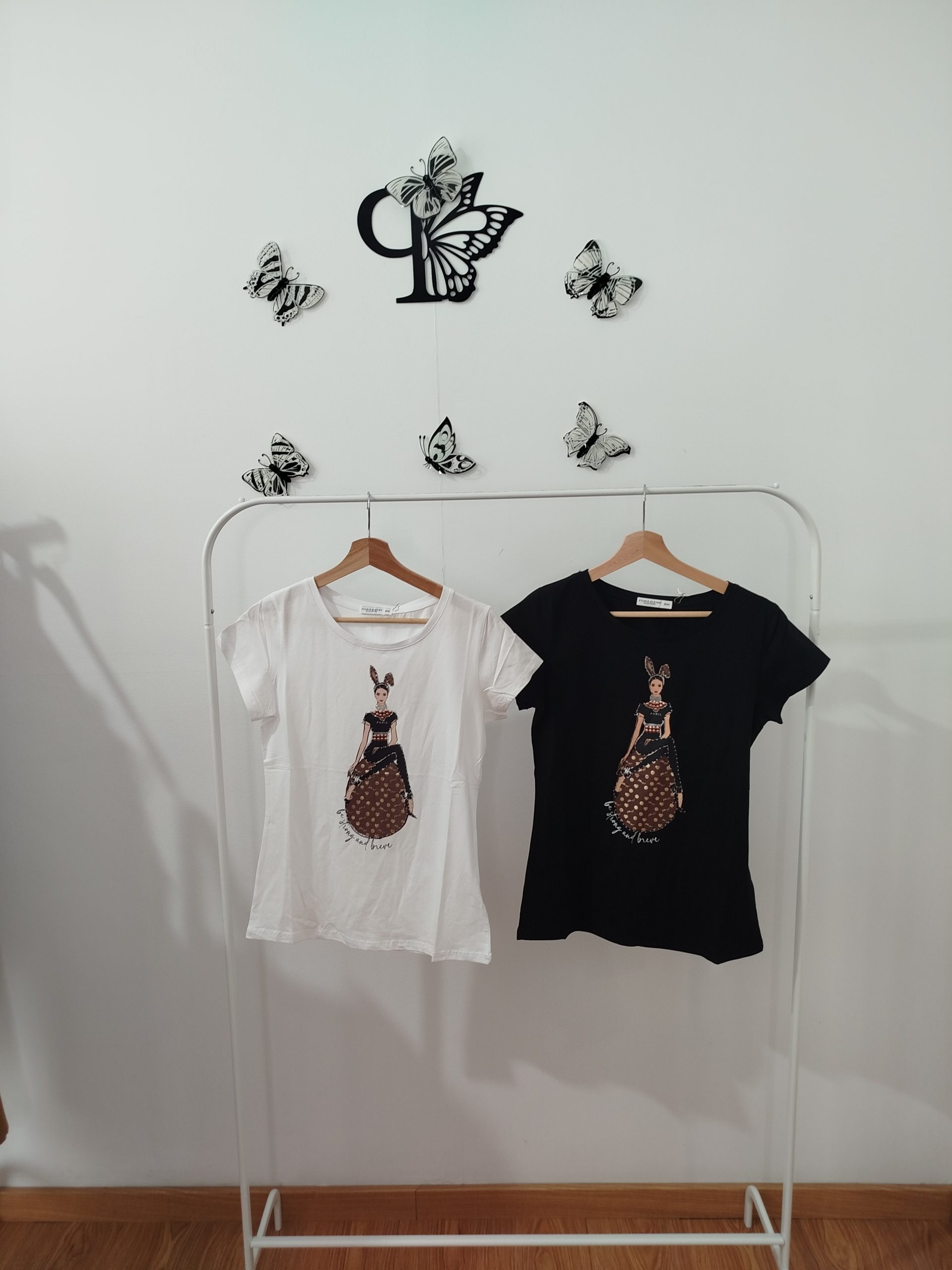Camiseta con decoración on destellos brillantes. Y mujer.