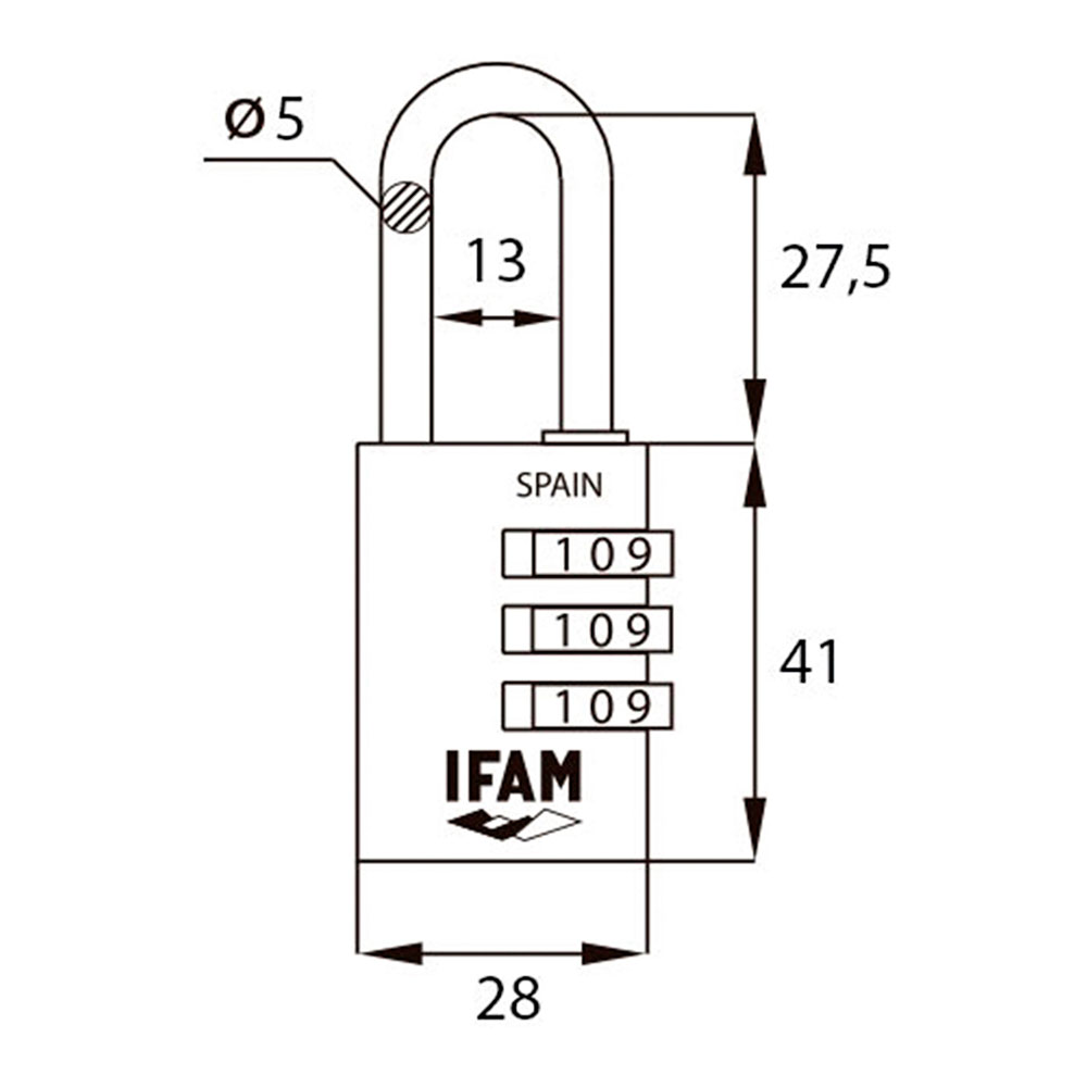 CANDADO COL COMBI30 NEGRO 30mm. ARCO Ø5mm. CON COMBINACIÓN. CUERPO FABRICADO EN ALUMINIO, ARCO FABRICADO EN ACERO CROMADO, IFAM
