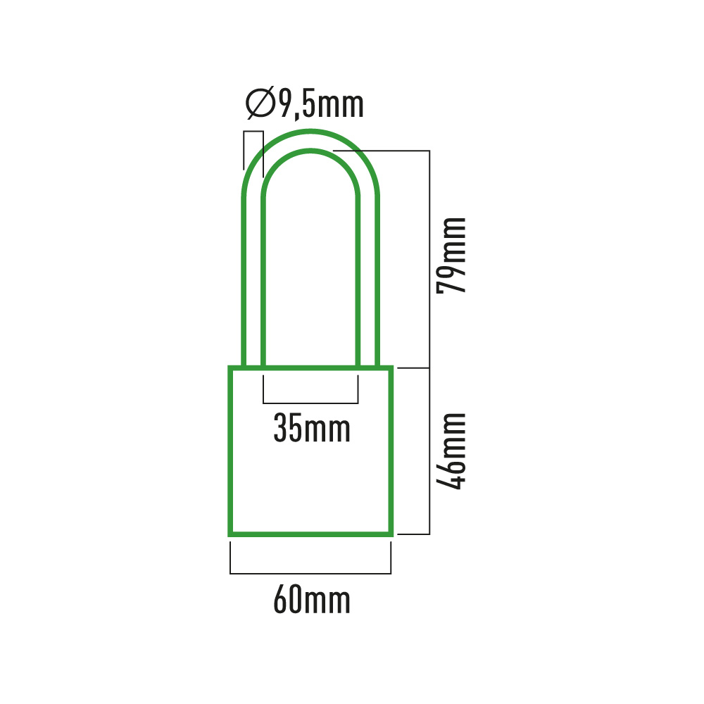 CANDADO LATÓN ARCO LARGO CON 3 LLAVES INCLUIDAS, MEDIDAS CANDADO: 60 x 20 x 46 mm, MEDIDAS ARCO :Ø9,5 mm 35 x 79 mm, COLOR DORADO Y CROMADO