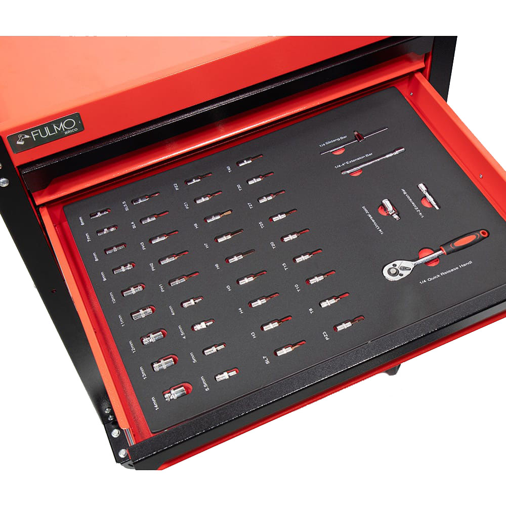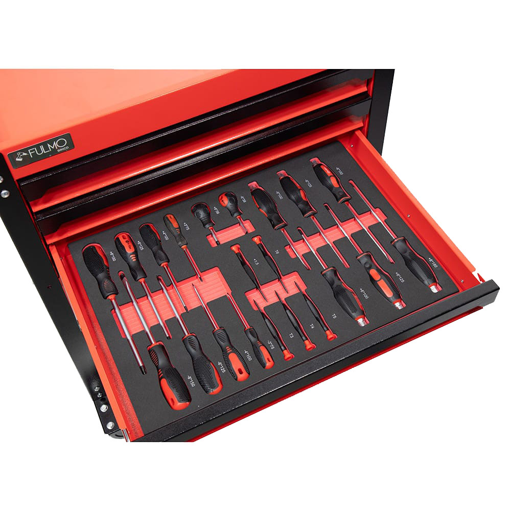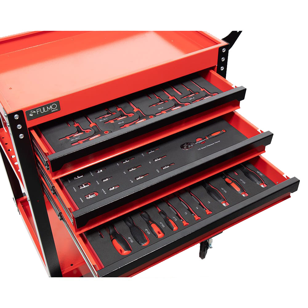 CARRO PARA HERRAMIENTAS DE 83 PIEZAS 309010201 FULMO BRICO CONTIENE: LLAVES DE CARRACA Y ADAPTADORES, PUNTAS Y VASOS, LLAVES ALLEN Y DESTORNILLADORES PESO DE 32,3kg MEDIDAS: 68x45x90cm