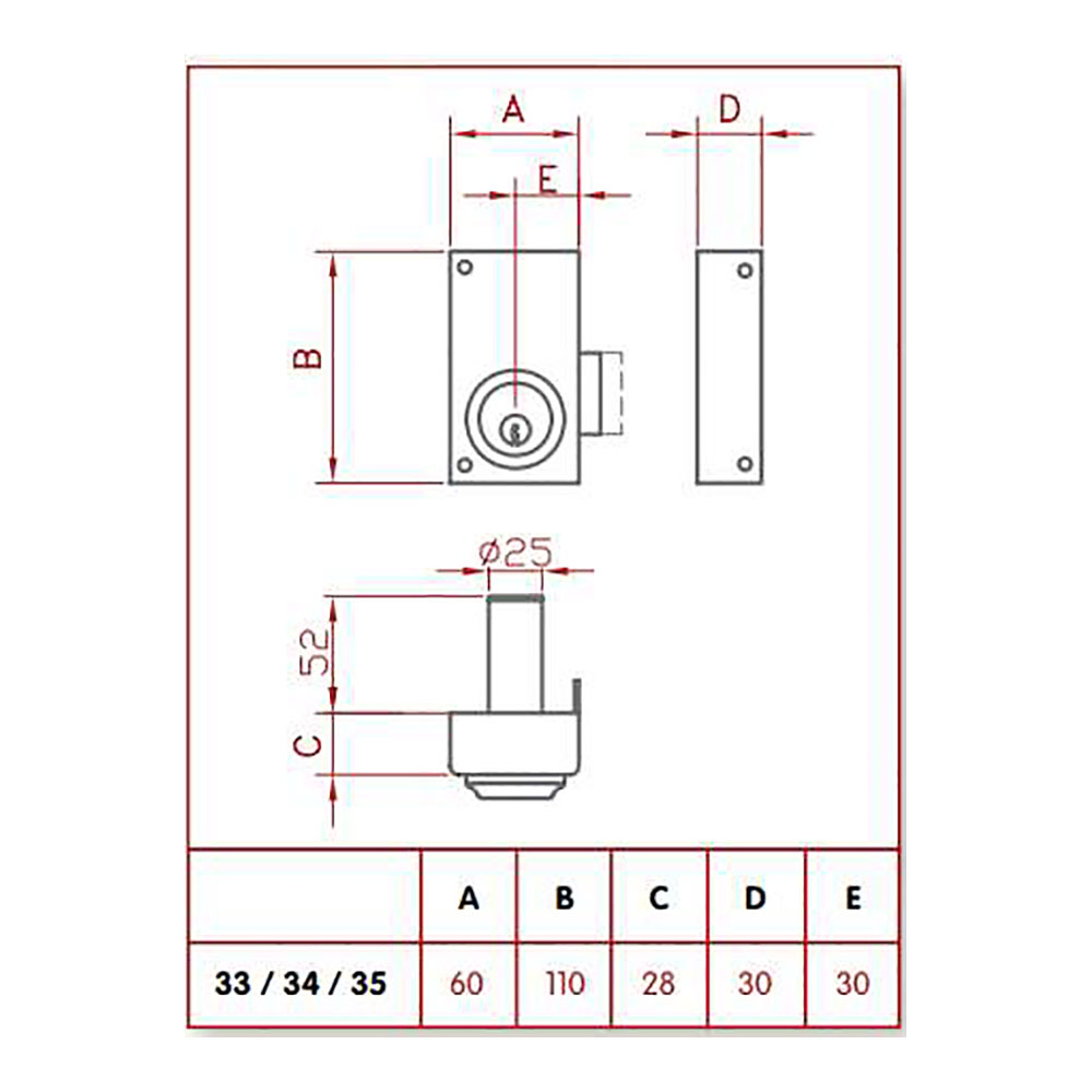 CERRADURA DE SOBREPONER SOLO LLAVE. DERECHA JIS 33-6D JIS CERRADURA DE SOBREPONER DE PISO DE 60mm. SOLO LLAVE MANO DERECHA CILINDRO FIJO DE 52mm 3 LLAVES