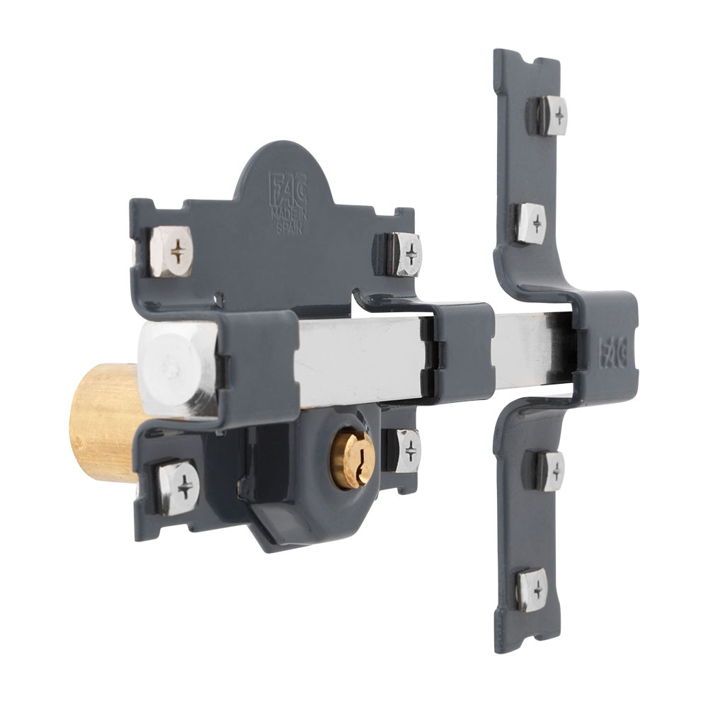 CERROJO 101-L/105 PINTADO F01050 FAC CERROJO CON BARRA DE 18mm Y PLACA DE 105mm. DIFERENTES APLICACIONES. CERRADERO FABRICADO EN CHAPA DE ACERO DE 3mm DE ESPESOR. CONTIENE 3 LLAVES DE SERRETA