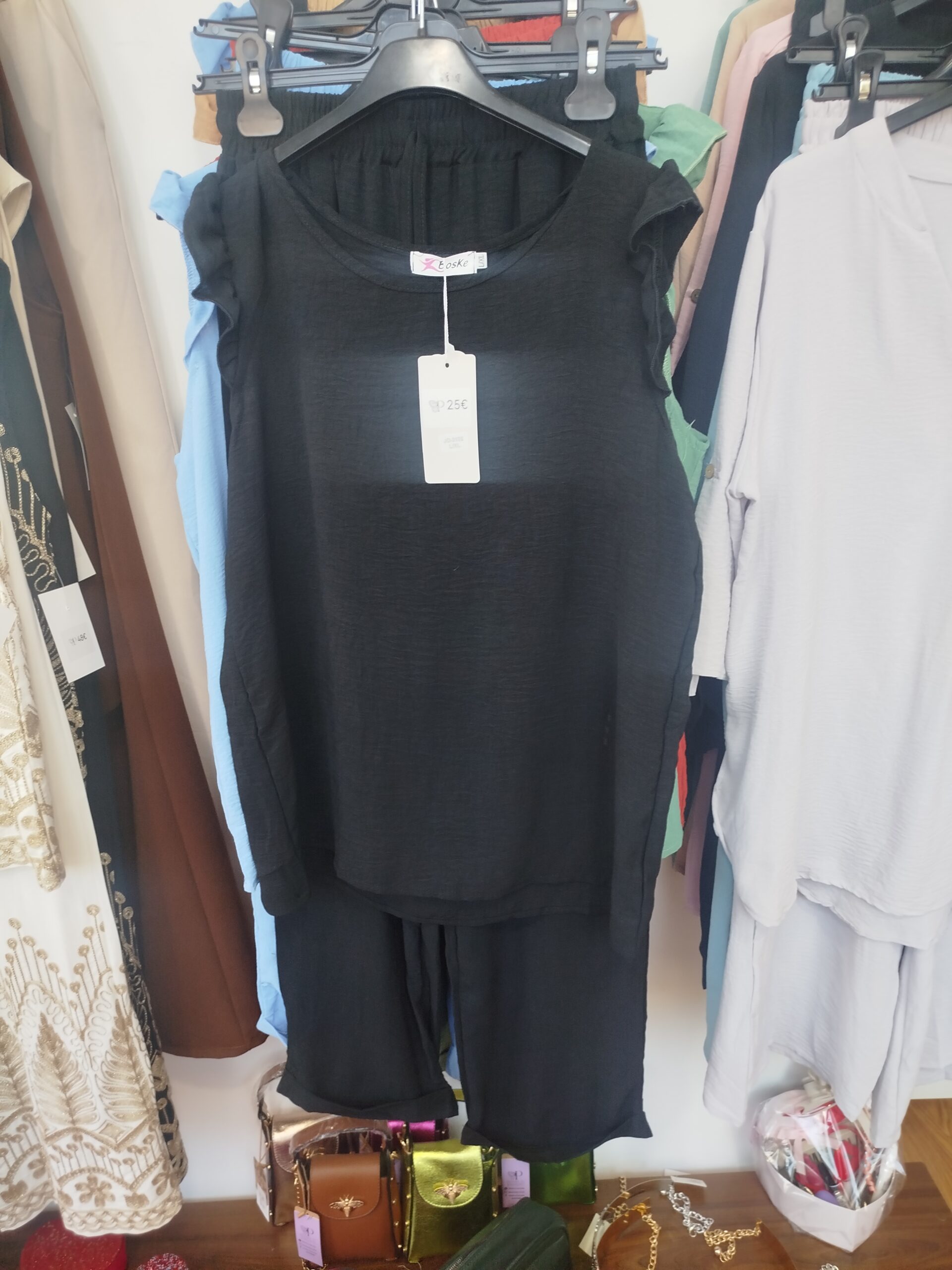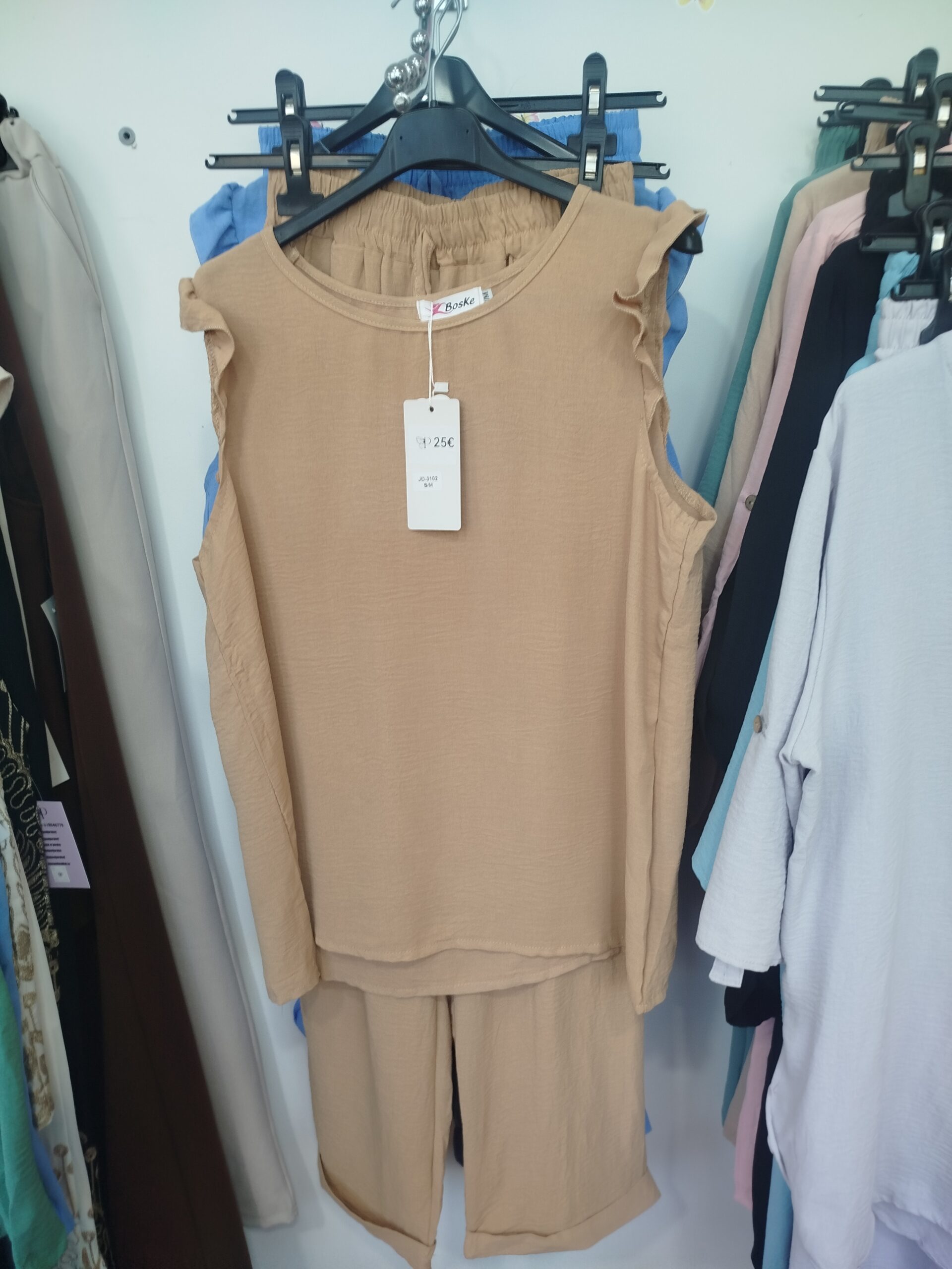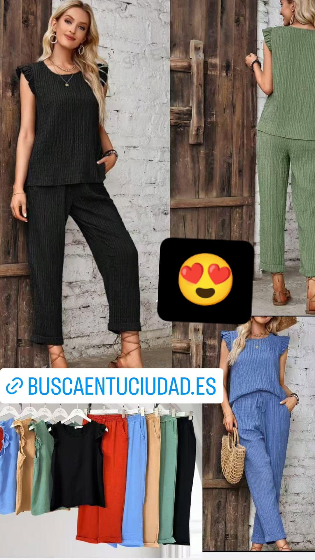 Este fantástico conjunto,  dos piezas pantalón de tiro no ancho con vuelta abajo pudiendo recoger con más vueltas dejándolo pirata