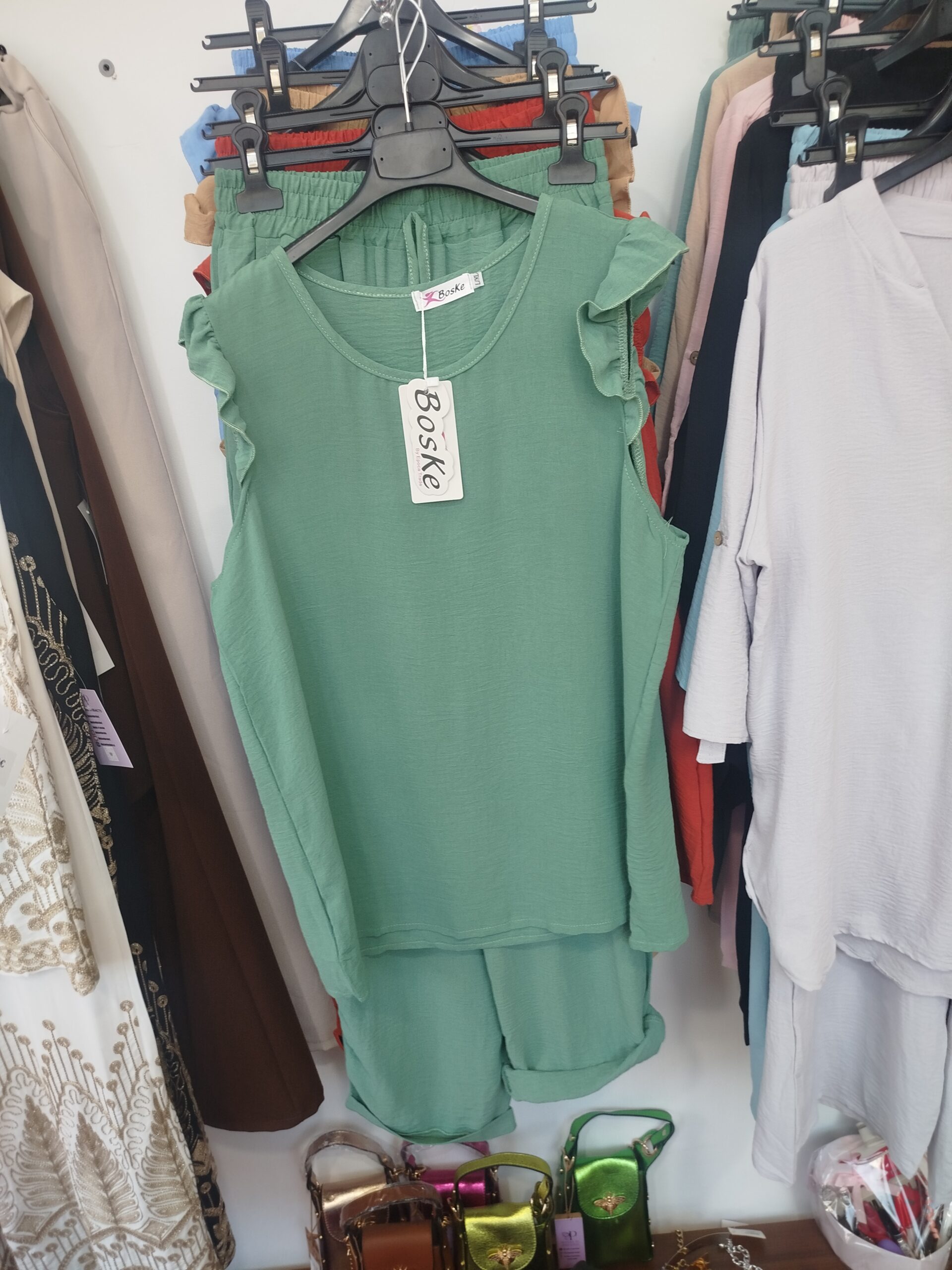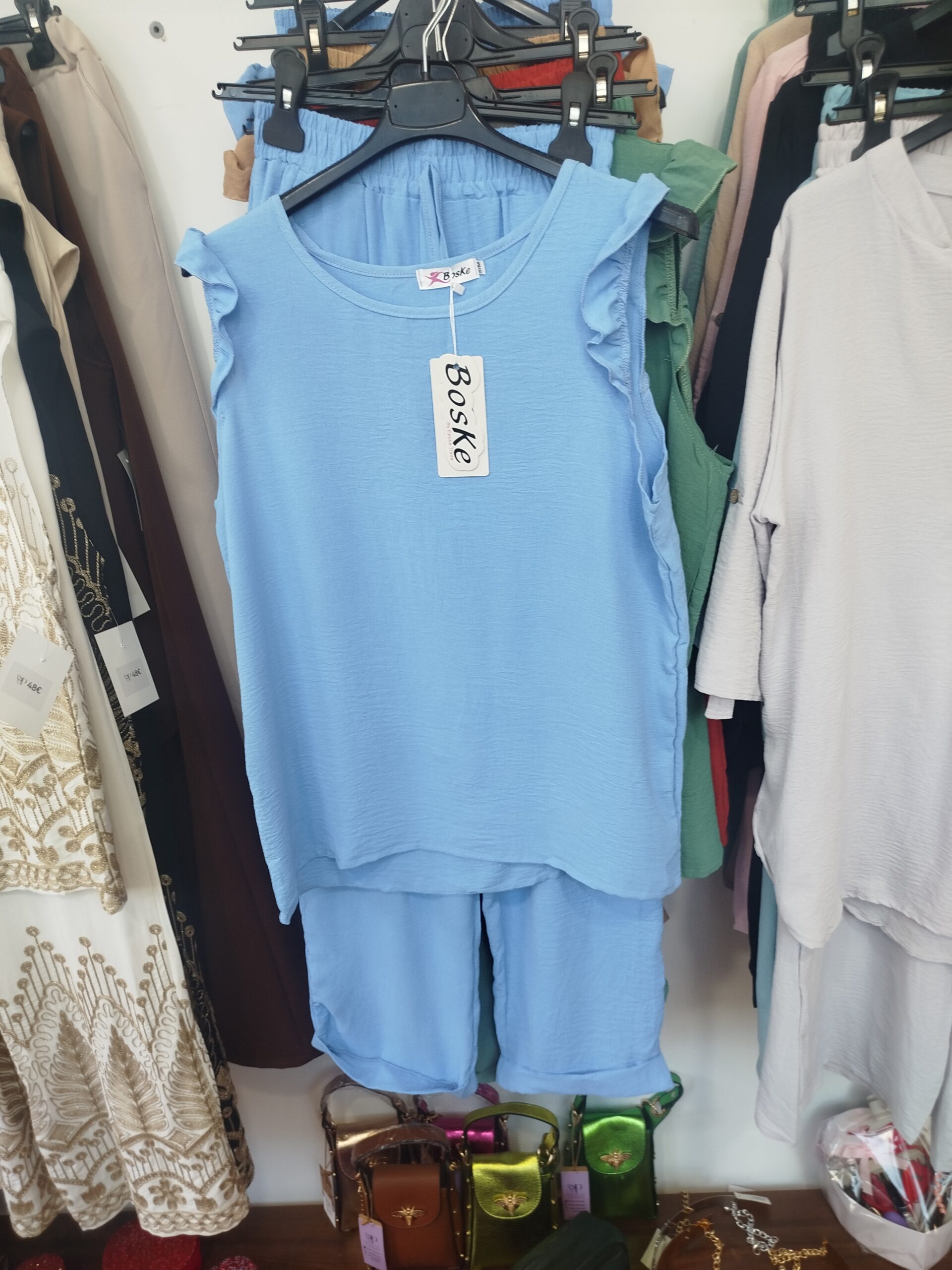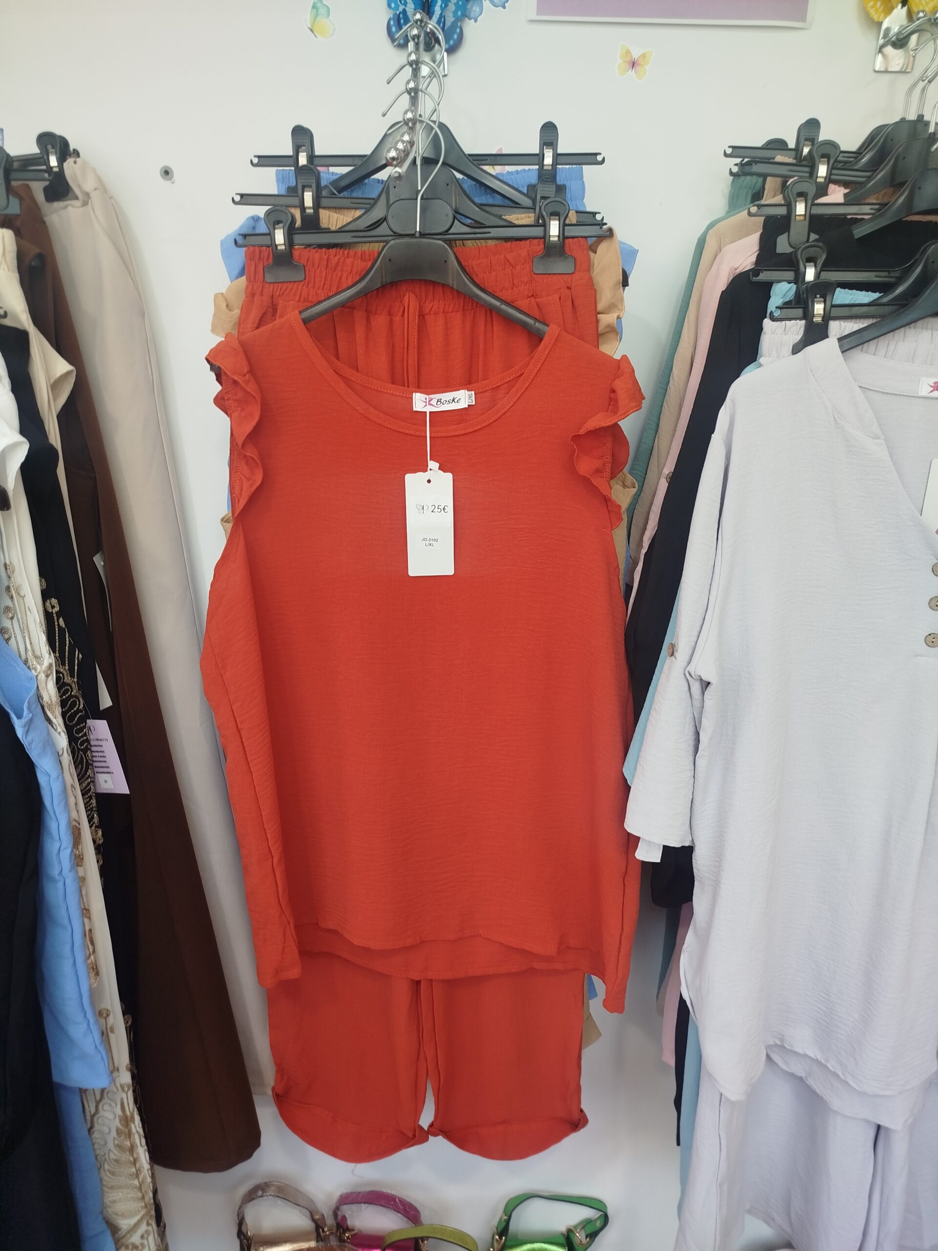 Este fantástico conjunto,  dos piezas pantalón de tiro no ancho con vuelta abajo pudiendo recoger con más vueltas dejándolo pirata