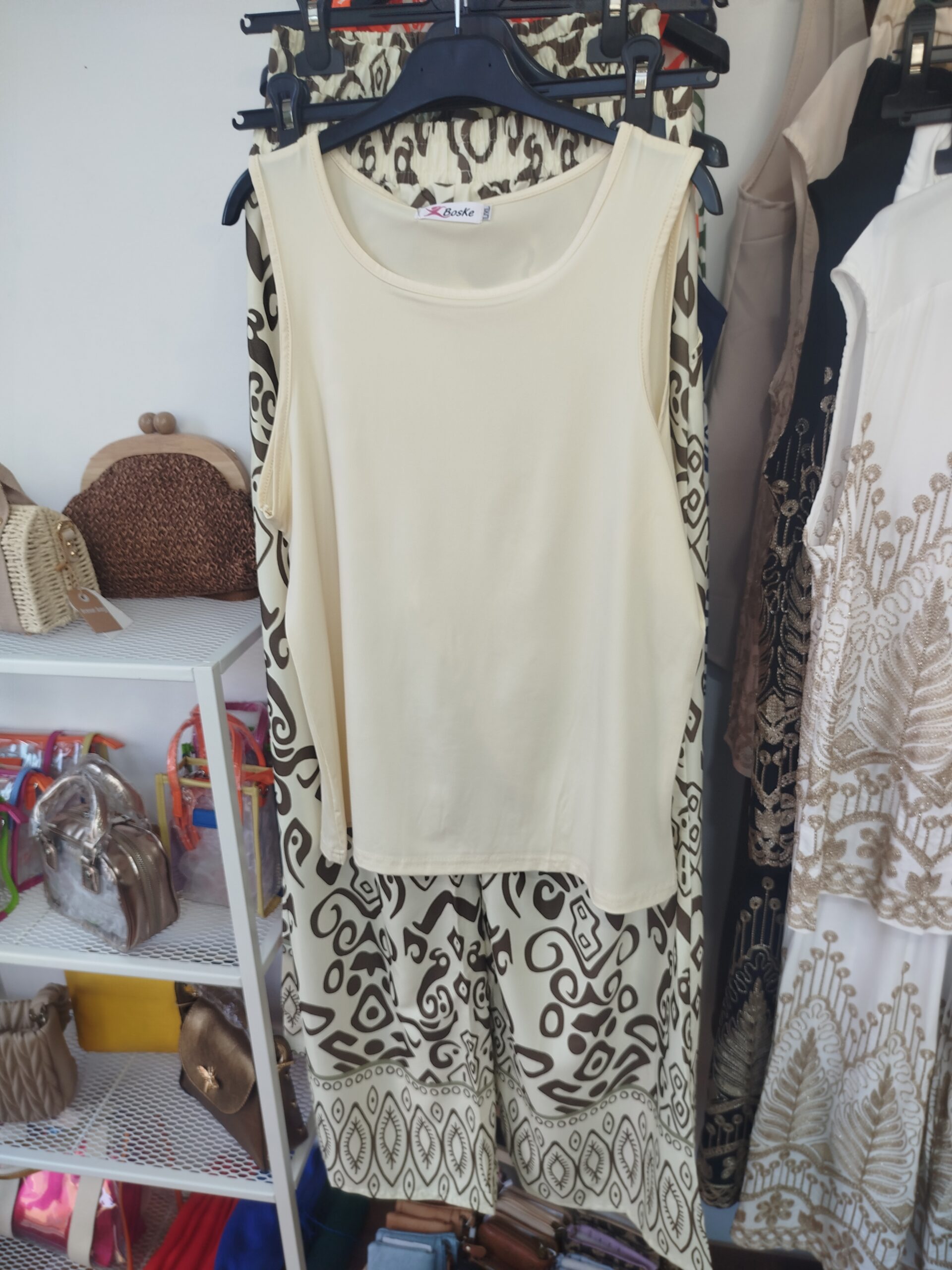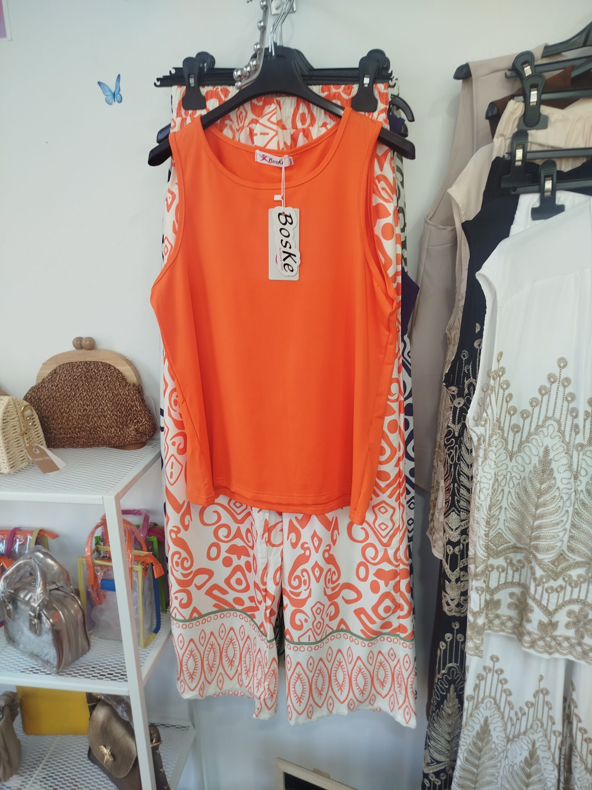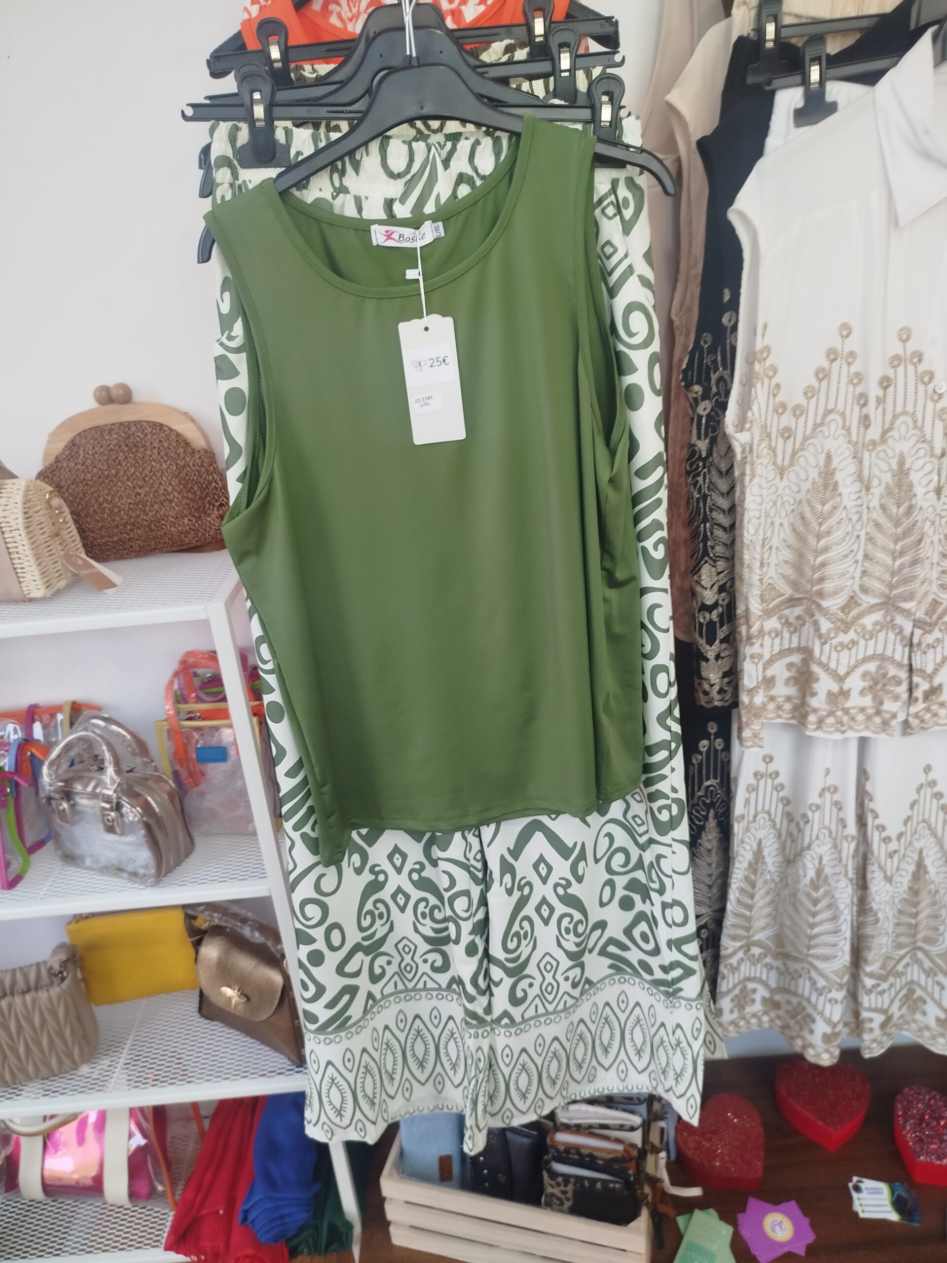 Conjunto Mandala, conjunto de dos piezas parte de arriba efecto frio que estira  mucho es totalmente licra , parte de abajo tela efecto frío tipo satén que no estira, su cintura si es elástica.