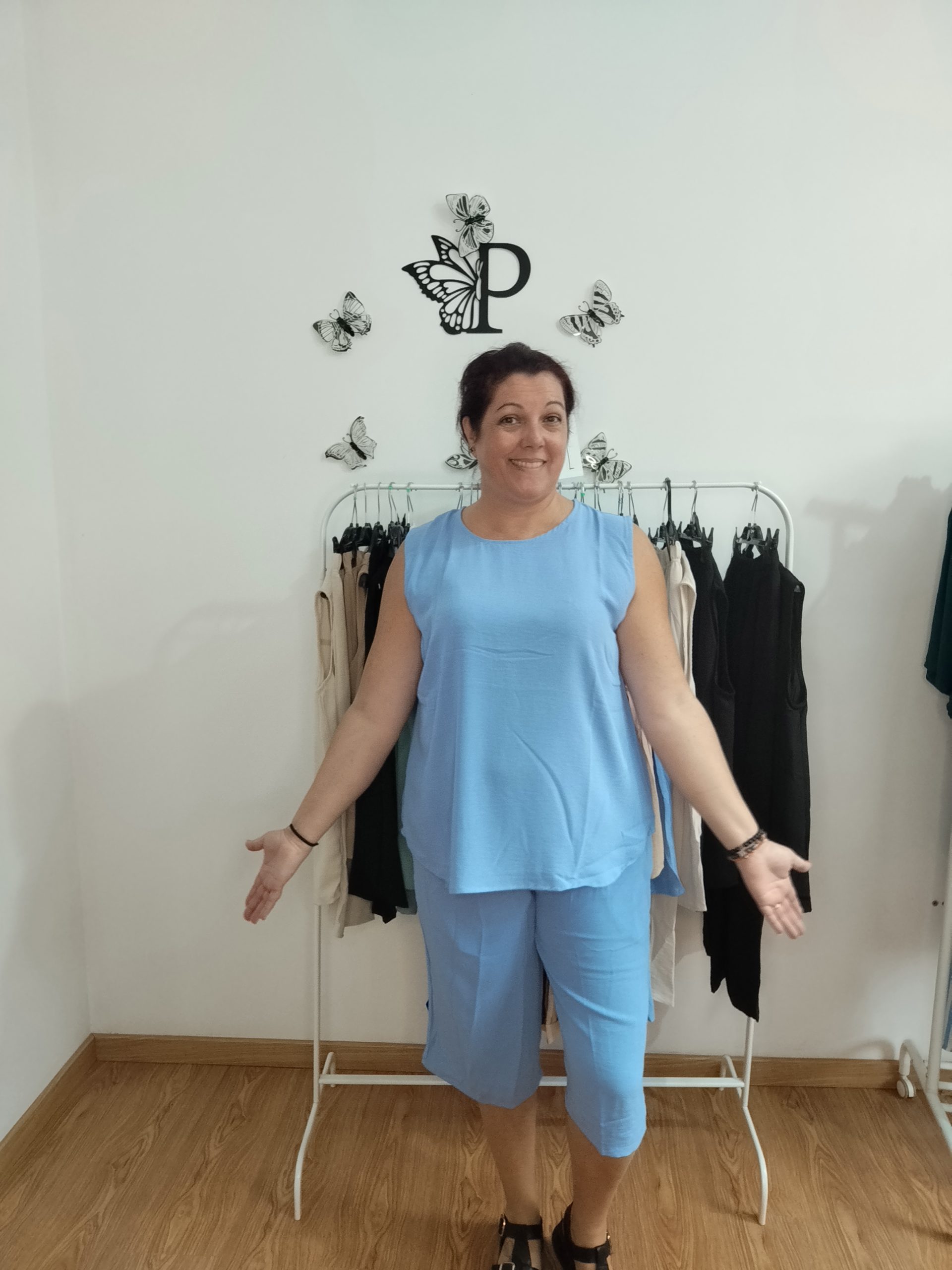 Conjunto formado por blusa y pantalon pitara con bolsillos y cinturilla elastica.