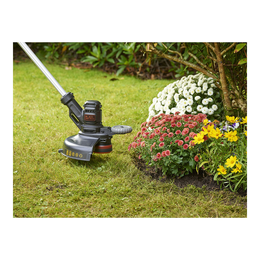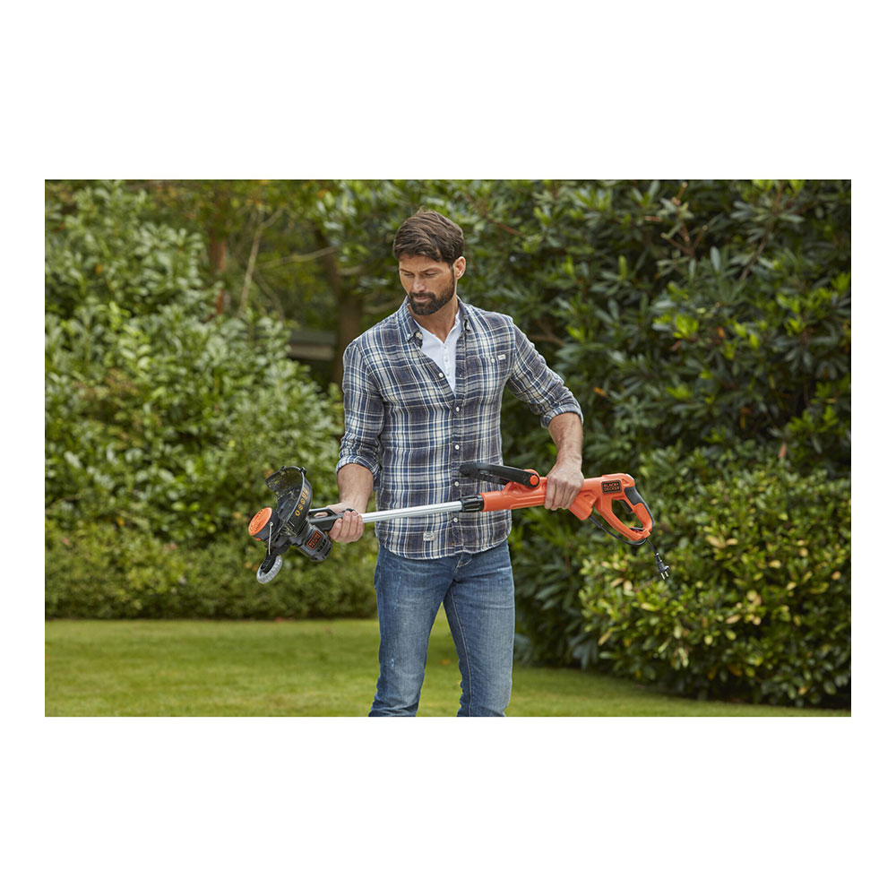 CORTABORDES 550W BESTE630-QS BLACK+DECKER. TECNOLOGIA POWERCOMMAND-EASY FEED, ALIMENTACION DE HILO CON SÓLO PULSAR UN BOTÓN. VELOCIDAD 7500rpm. ANCHO DE CORTE 30cm. PROTECCION PARA PLANTAS Y RUEDA/GUIA BORDEADORA, MANGO TELESCÓPICO PARA AJUSTE DE ALTURA, HILO Ø1,6mm. 93dB. VIBRACION: 4,9m/s². 220-240V