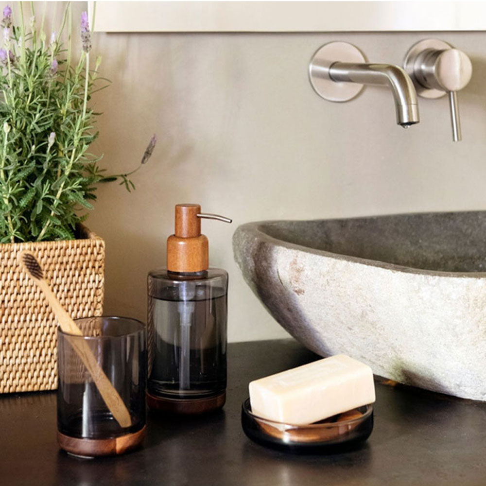 DISPENSADOR DE CRISTAL GRIS Y ACACIA BA73074 ANDREA HOUSE.