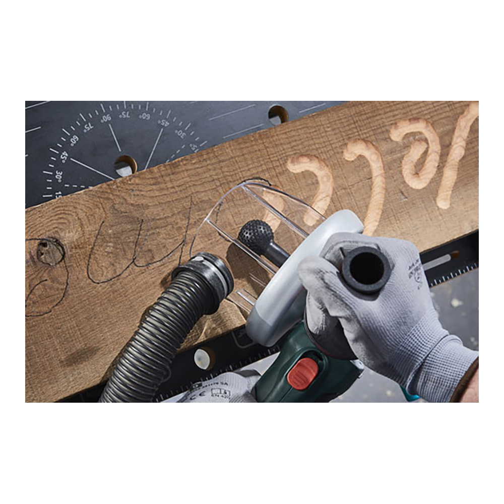 ESCOFINA DE BOLA PARA AMOLADORA 4386000 WOLFCRAFT. LA ESCOFINA ESFÉRICA CON DIÁMETRO DE Ø31,5mm PARA AMOLADORA ANGULAR ES EL ACCESORIO IDEAL PARA REALIZAR HENDIDURAS Y CONTORNOS EN MADERA, Y ES PERFECTAMENTE ADECUADA PARA SU USO EN EL BRICOLAJE Y EL ÁMBITO ARTÍSTICO. CON SU ROSCA M14, ES COMPATIBLE CON TODAS LAS AMOLADORAS ANGULARES COMERCIALES EN LOS TAMAÑOS DE 115 O 125mm. LA ESCOFINA ESFÉRICA ESTÁ FABRICADA CON ROBUSTO ACERO C45 Y HA SIDO ESPECIALMENTE DISEÑADA PARA SU USO EN MADERA BLANDA Y DURA SIN INCLUSIONES. LA ESCOFINA SORPRENDE POR SU GRAN CAPACIDAD DE RETIRAR MATERIAL Y SU RÁPIDO AVANCE EN EL TRABAJO. PUEDE MANEJARSE DE FORMA ERGONÓMICA CON UNA SOLA MANO, LO QUE PERMITE MODELAR ESCULTURAS DE MADERA DE FORMA CONTROLADA, POR PONER UN EJEMPLO. PARA LA MAYOR SEGURIDAD POSIBLE EN EL TRABAJO, LA FRESA DE DISCO DEBE SIEMPRE UTILIZARSE CON LA CAMPANA DE ASPIRACIÓN DE WOLFCRAFT (N.° REF. 439900).