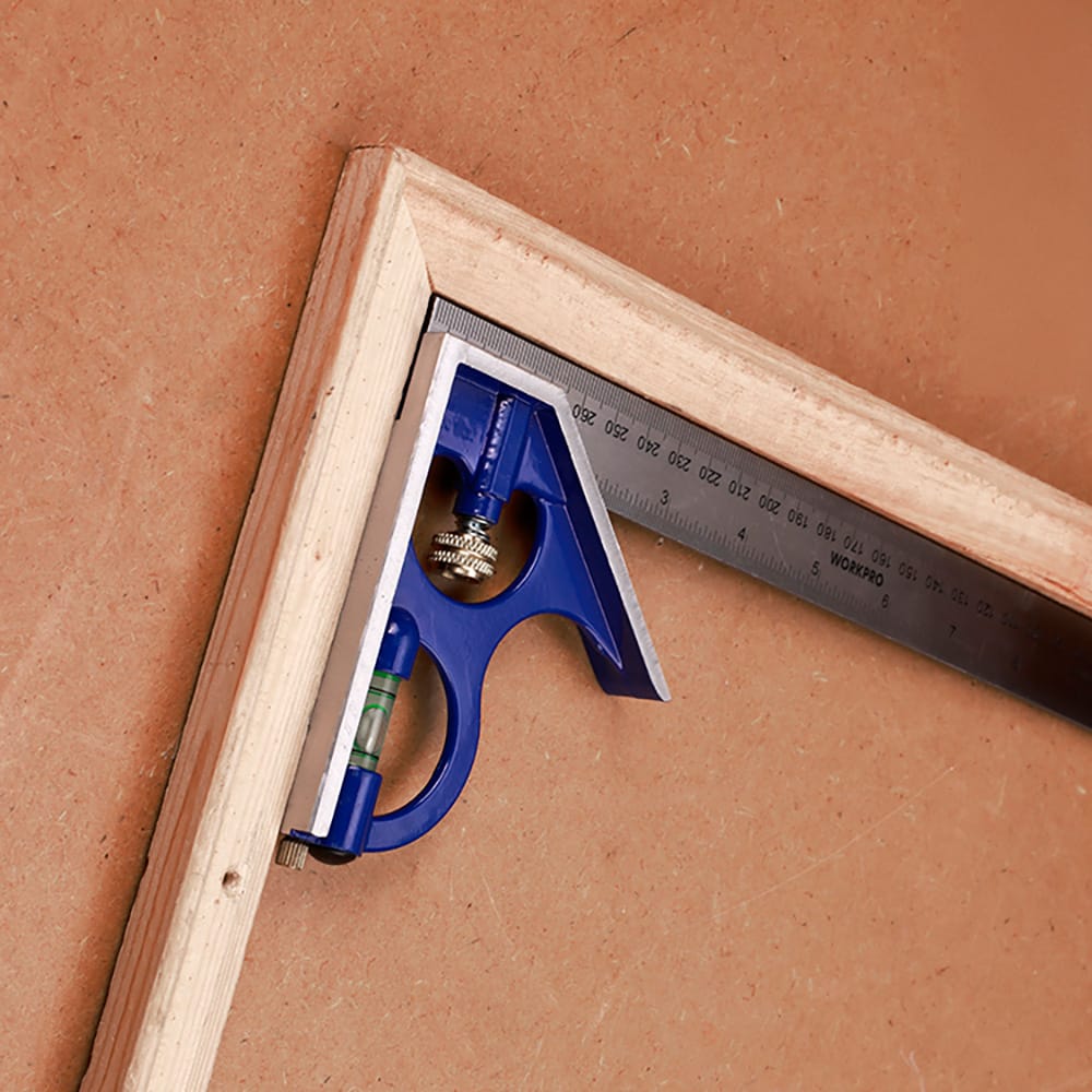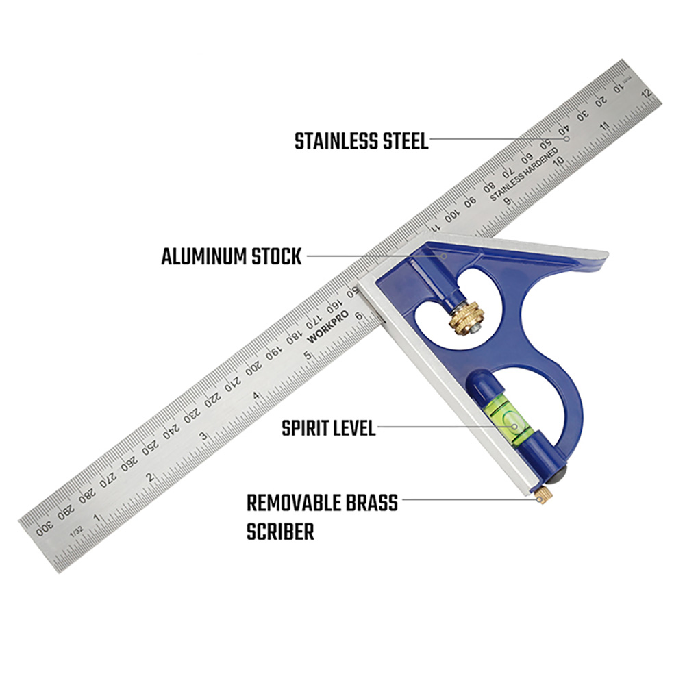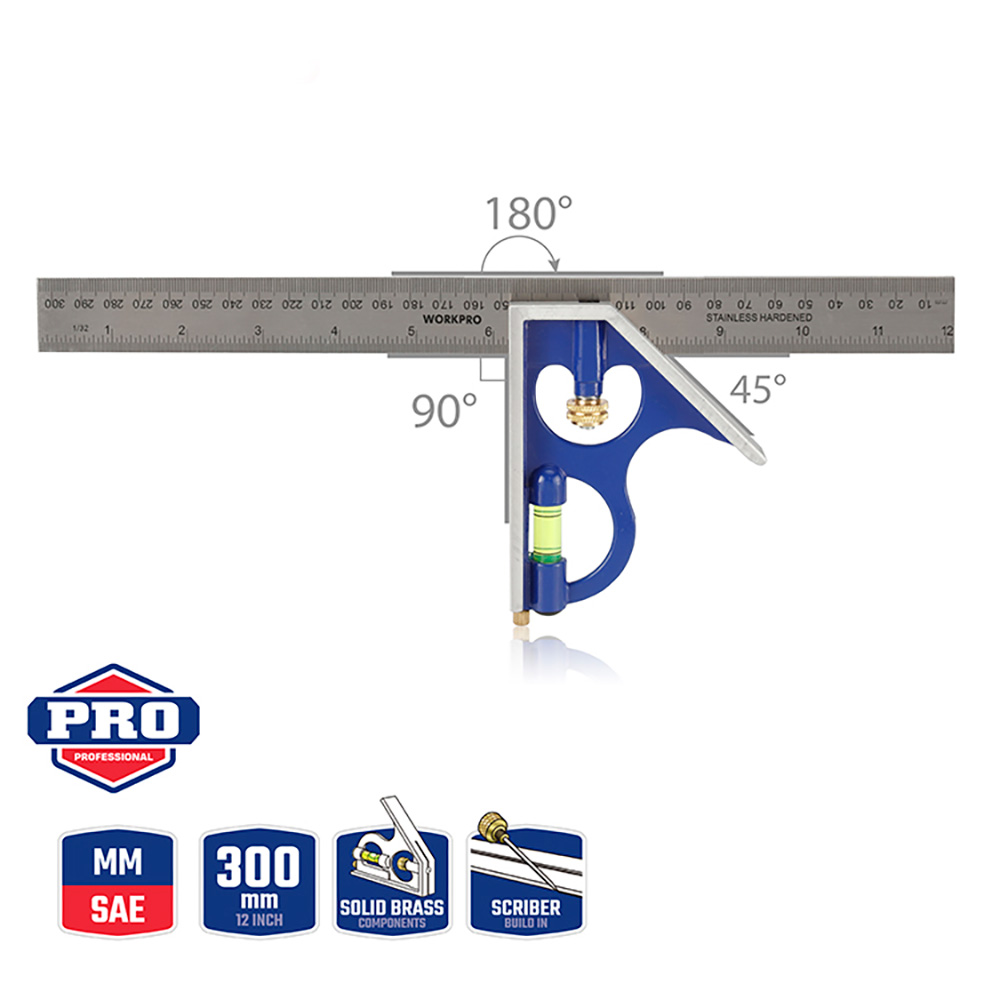 ESCUADRA COMBINADA 300 mm , MECANIZADO DE PRECISIÓN ALUMINIO FUNDIDO A PRESIÓN, DESMONTABLE CON BURBUJA ACRÍLICA RESISTENTE A LOS IMPACTOS, GRADUACIONES EN mm, 1/8, 1/16 Y 1/32″