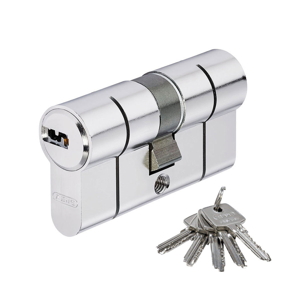 EUROCILINDRO DE PUNTOS NÍQUEL DOBLE EMBRAGUE 40/40mm – D66 N 40/40 ABUS. LEVA LARGA, INCLUYE 5 LLAVES DE PUNTOS, SON COPIABLES, REFERENCIA SILCA AB48 REF EDM 12028. CILINDRO PARA PUERTA CON LLAVE DE PUNTOS REVERSIBLE CON ROTURA PROGRAMADA (PRE-SNAP) Y DOBLE EMBRAGUE. DOBLE CILINDRO DE PERFIL EUROPEO.