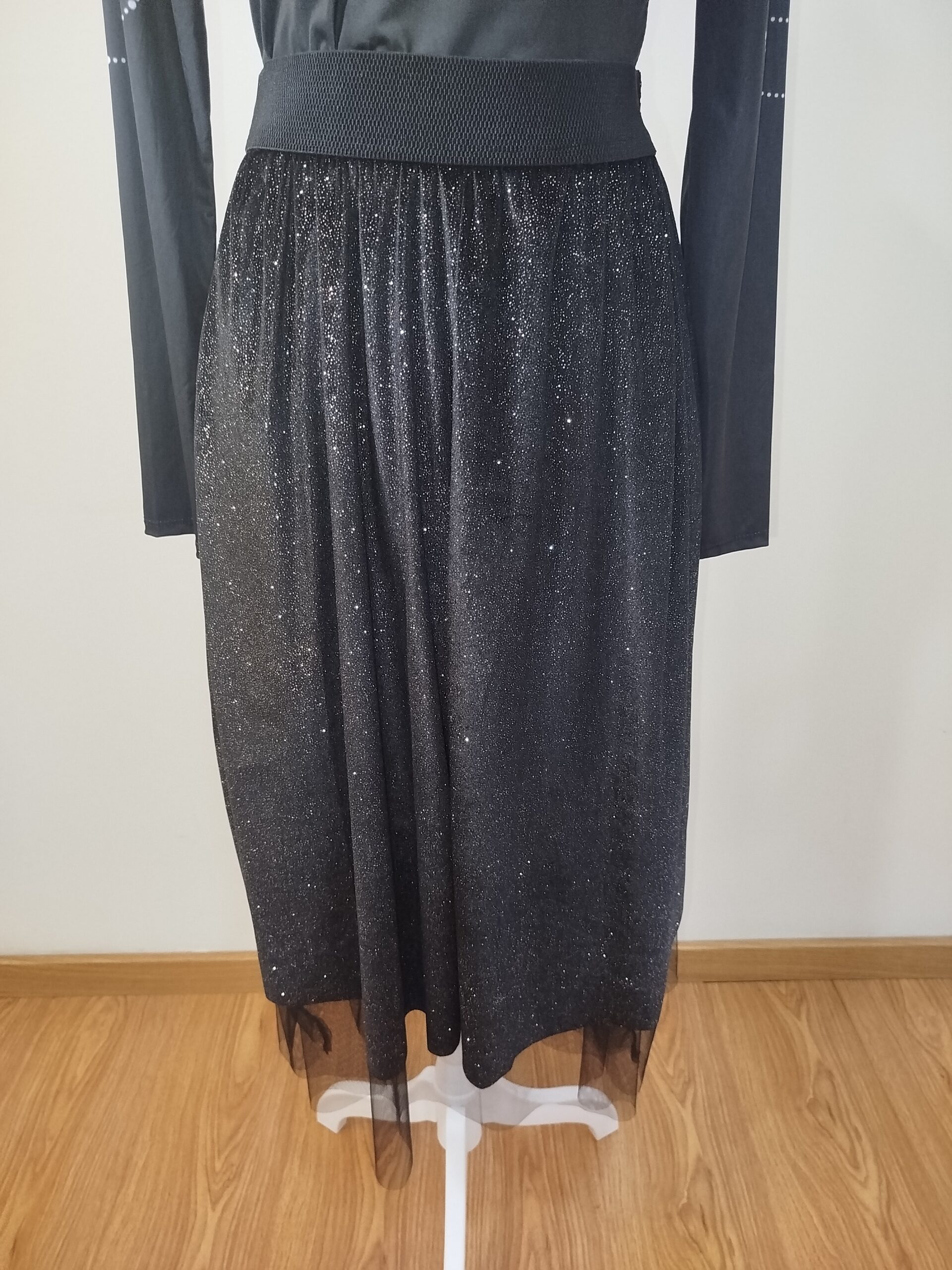 Elegante falda de tela con brillo, cinturilla elástica,tul por debajo.
