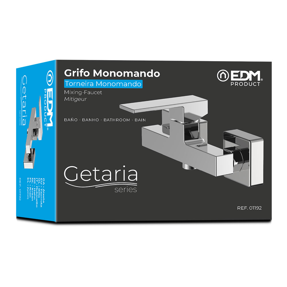 GRIFO MONOMANDO EMPOTRADO DE DUCHA. SERIE GETARIA EDM. COLOR CROMADO. MATERIAL: CUERPO DE LATON, CON MANGO DE ZINC. CARTUCHO CERAMICO. MEDIDAS: 21×12,9×9,5cm. EDM
