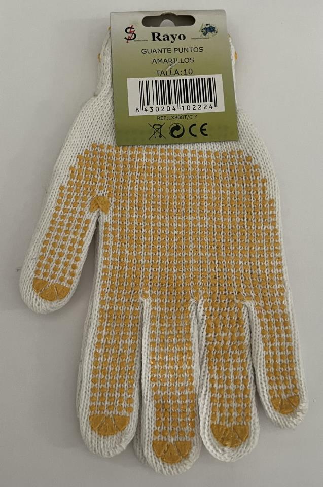 Guante Puntos Amarillo talla 10.