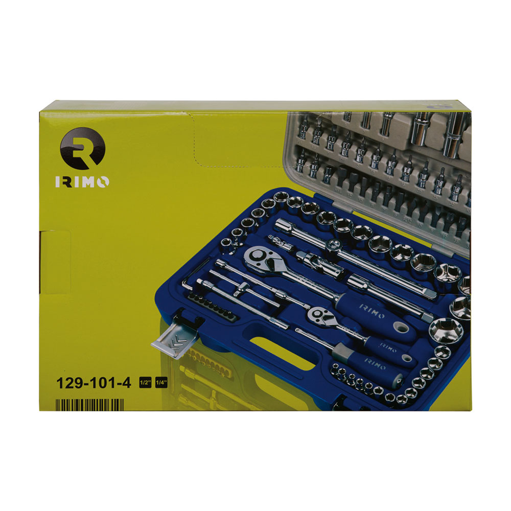 JUEGO CARRACA 1/2″ 1/4″, VASOS HEXAGONALES, 101 PIEZAS 129-101-4. VASOS HEXAGONALES EN DIMENSIONES MÉTRICAS. ALEACIÓN DE ACERO AL CROMO VANADIO. ACABADO CROMADO BRILLANTE. CAJA DE POLIETILENO DE ALTA DENSIDAD. CAJA CON CIERRES DE METAL. NORMAS: DIN3120, DIN3124 Y DIN3122.”