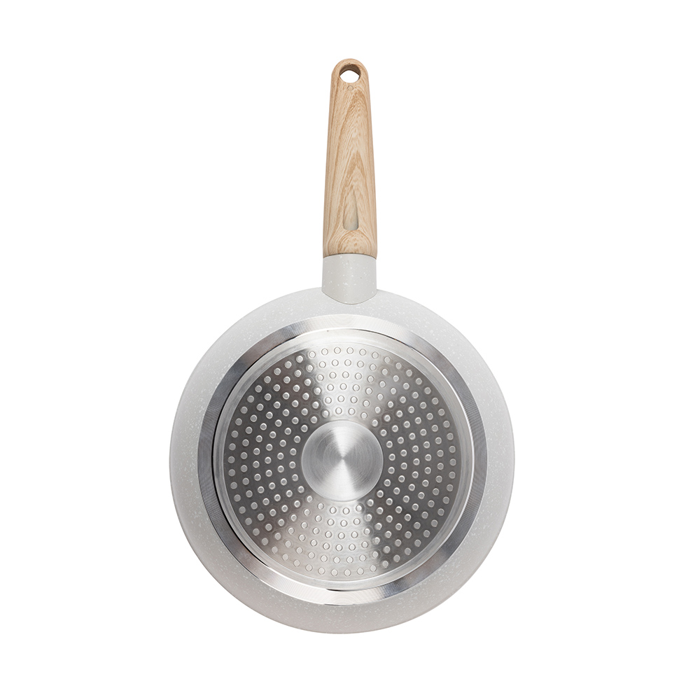 JUEGO DE 3 SARTENES DE ALUMINIO PRENSADO, REVESTIMIENTO ANTIADHERENTE, MANGO DE MADERA CON TACTO SUAVE. SIN PFOA APTAS PARA INDUCCIÓN, GAS, ELÉCTRICO, VITROCERAMICA Y HALÓGENO. Ø 16 x 3.5 cm, Ø 20 x 4.5 cm, Ø 24 x 4.5 cm. COLOR CREMA