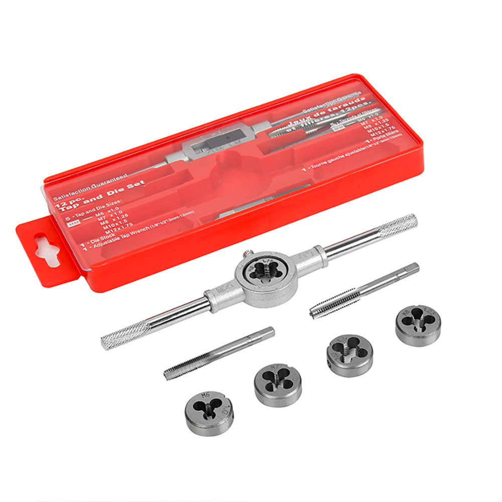 JUEGO DE TERRAJAS 12 PIEZAS. REPARACIÓN PROFESIONAL DE ROSCAS INTERNAS Y EXTERNAS. ACERO TRATADO TERMICAMENTE. CON CAJA DE PLÁSTICO PARA SU ALMACENAJE