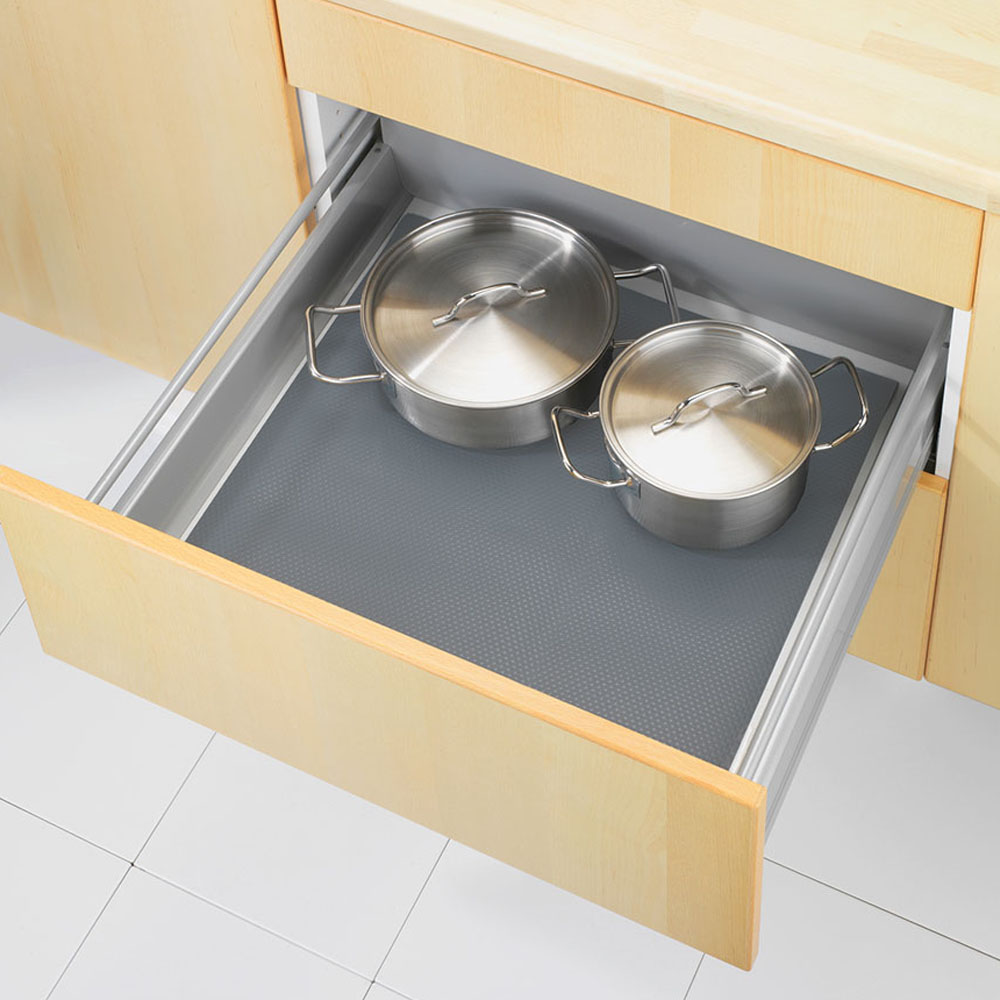 LÁMINA ANTIDESLIZANTE EXTRA GRUESA, GRIS 47040100 WENKO EL ANTIDESLIZANTE IDEAL EN ARMARIOS Y CAJONES. ASEGURA LA ESTABILIDAD DE VASOS, OLLAS Y PIEZAS PEQUEÑAS. AMORTIGUA EL RUIDO Y RECORTABLE A LA MEDIDA. PESO POR METRO CUADRADO: 720g/m². DIMENSIONES: 50x150cm (ancho/longitud)