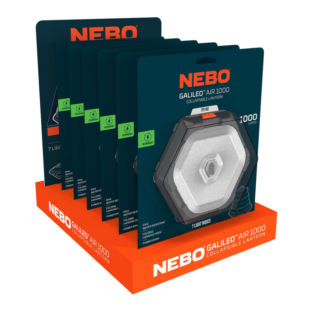 GALILEO AIR 1000 ES UNA POTENTE LINTERNA DE 1000 LÚMENES QUE PRESENTA UN DISEÑO PLEGABLE QUE AHORRA ESPACIO PARA UNA CÓMODA PORTABILIDAD. LA LUZ BLANCA CÁLIDA ILUMINA EFICIENTEMENTE CUALQUIER ESPACIO MIENTRAS QUE LA OPCIÓN DE LUZ ROJA AYUDA A PRESERVAR LA VISIÓN NOCTURNA EN CONDICIONES DE POCA LUZ. ESTA LINTERNA RECARGABLE TAMBIÉN SIRVE COMO BANCO DE ENERGÍA PARA CARGAR SUS DISPOSITIVOS ALIMENTADOS POR USB. 6 MODOS DE LUZ. ALTA (1000 LÚMENES). 1 HORA / 20 METROS. MEDIA (500 LÚMENES). 5 HORAS / 14 METROS. BAJA (100 LÚMENES). 10 HORAS / 6 METROS. ESTROBOSCÓPICA (500 LÚMENES).