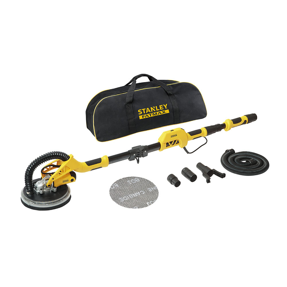 LIJADORA DE PANEL DE YESO 750W SFMEE500S-QS STANLEY VELOCIDAD VARIABLE 600-1.700 rpm, HOJA Ø225mm, LUZ LED 360°. INCLUYE 1 HOJA, ADAPTADORES PARA ASPIRADOR Y BOLSA DE TRANSPORTE
