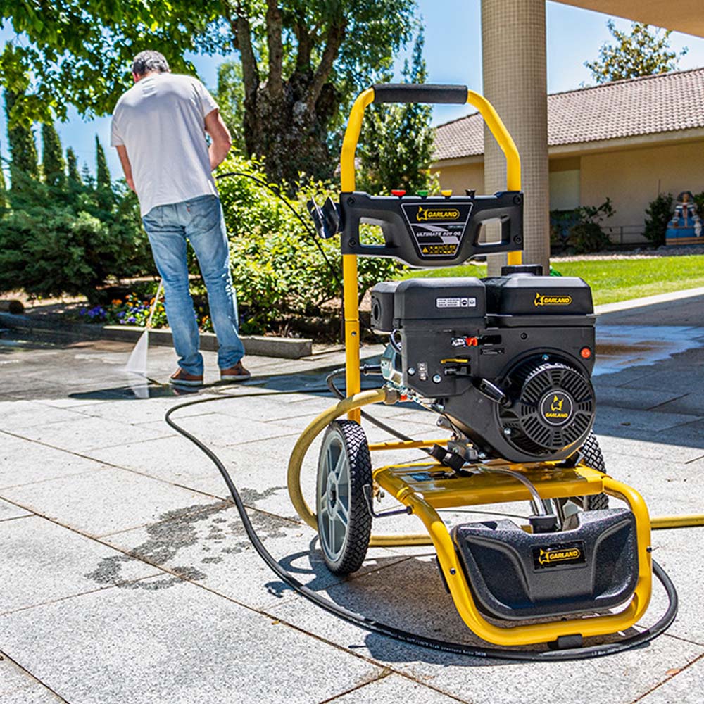 LIMPIADORA DE AGUA A PRESIÓN DE GASOLINA ULTIMATE 820QG. 45-0057 GARLAND. MOTOR GARLAND 4 TIEMPOS. CILINDRADA 208cc POTENCIA 4KW/5,36CV CAUDAL 600L/h. AUTOASPIRANTE. PRESIÓN MÁX. 250 BAR INCLUYE MANGUERA DE 7m DE CAUCHO REFORZADA CON ACERO, PISTOLA CON LANZA METÁLICA Y BOQUILLAS INTERCAMBIABLES BOMBA CON CULATA DE LATON Y PISTONES DE ACERO TEMP. MÁX. ENTRADA DE AGUA 50°C. MEDIDAS 58,4×53,8x43cm. PESO 30kg.