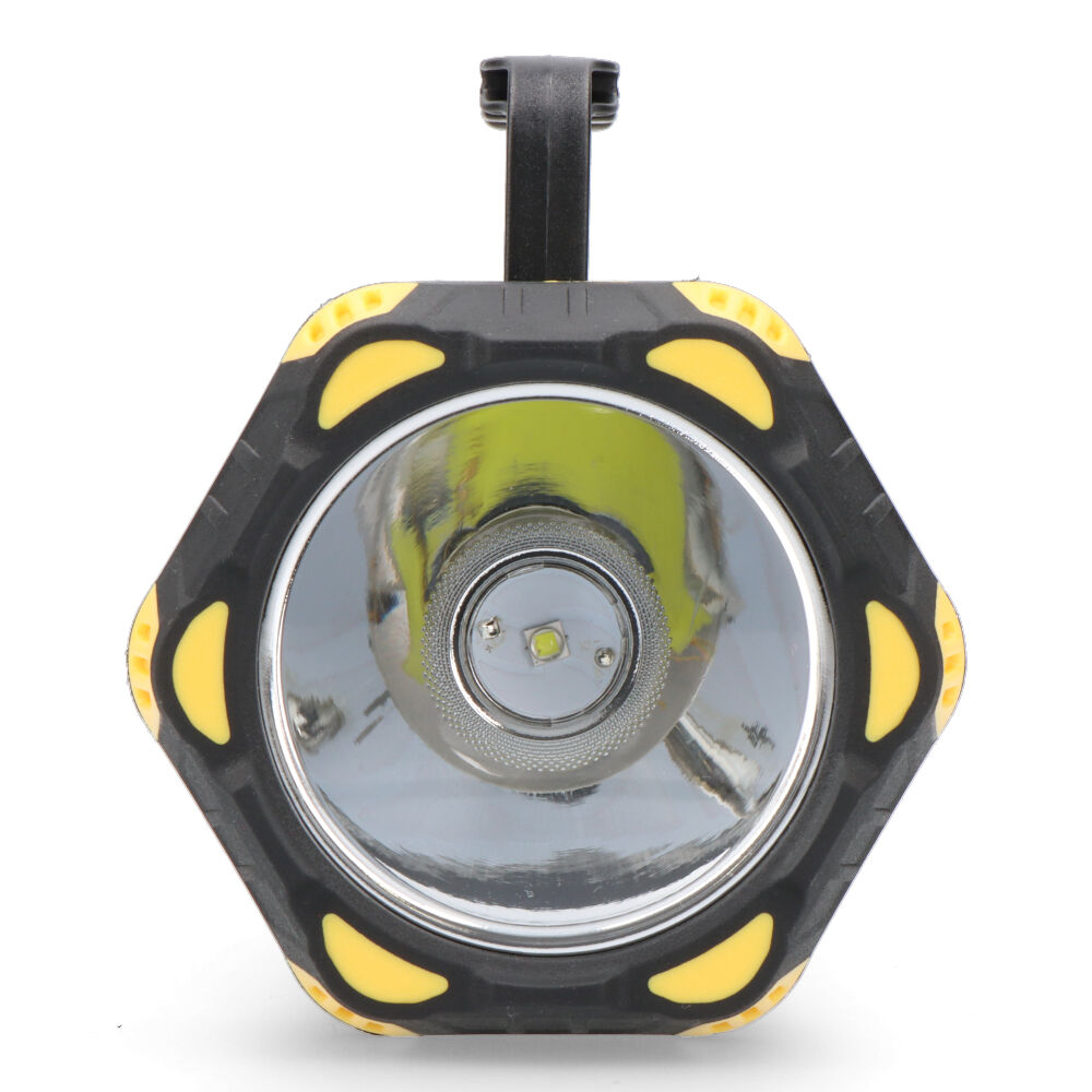 LINTERNA DE MANO LED. 5W SPOT LED 10000K 2 MODOS: 420lm/200lm. 2W SIDE LED 7500K 2MODOS: 160lm/90lm. 3W SMD LED 6500K 4 MODOS:270lm/140lm/LUZ ROJA/FLASH ROJO 200lm (10 LEDS ROJOS + 20 LEDS BLANCOS). CUERPO DE GOMA PARA PROTECCIÓN DE CAÍDAS, CON ROSCA UNIVERSAL PARA TRIPODE Ø8mm , ASA ROTATIVA 180°, CABLE MICRO USB INCLUIDO, FUNCIONA CON BATERÍA DE 4x4800mAh DE LITIO. CON INDICADOR DE BATERÍA DE 4 LEDS. HASTA 17h AUTONOMÍA, CARGA DE 10h DIMENSIONES: 117x108x182mm