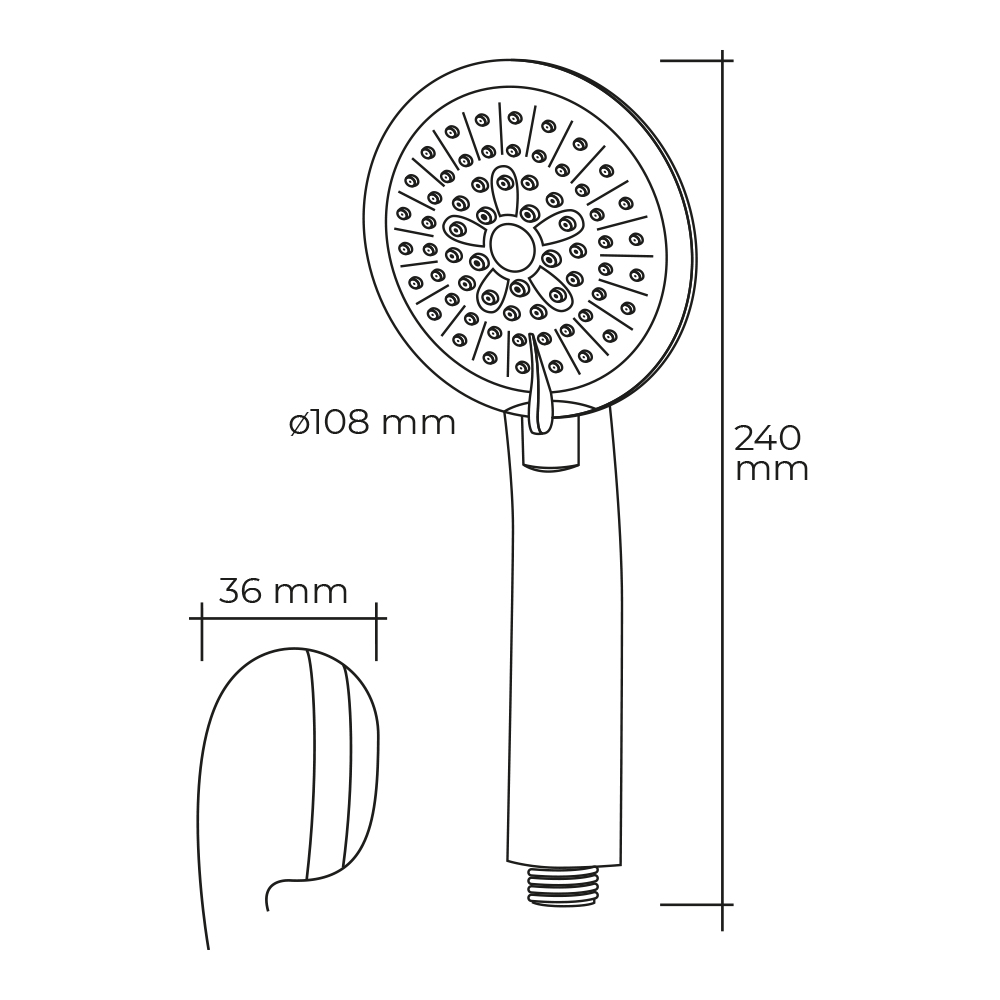 MANGO DE DUCHA ANTICALCAREO. MODERNO. 3 FUNCIONES. DIMENSIONES: Ø10,8×3,6x24cm (diámetro/fondo/alto) COLOR CROMO. ERGONÓMICO. MATERIAL: ABS