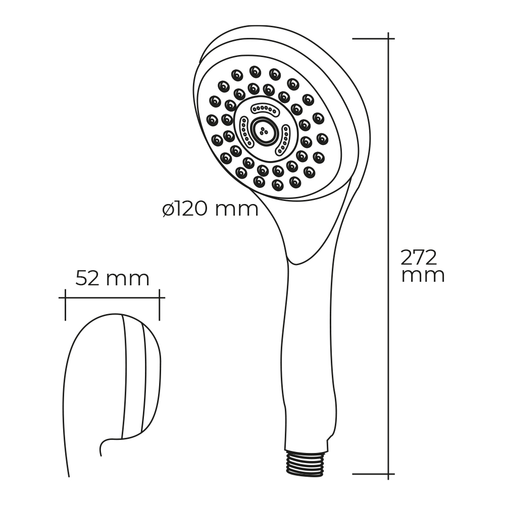 MANGO DE DUCHA ANTICALCAREO. MODERNO. 6 FUNCIONES. DIMENSIONES: Ø12×5,2×27,2cm. COLOR CROMO. ERGONOMICO. MATERIAL: ABS. EDM