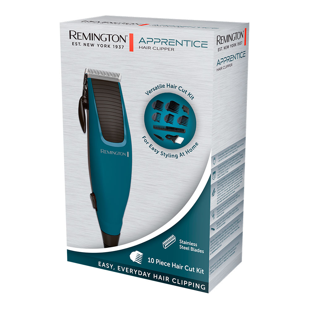 MAQUINA CORTA CABELLOS APPRENTICE. MODELO: HC5020. CUCHILLAS DE ACERO INOXIDABLE AUTOAFILABLES. PALANCA CÓNICA PARA LONGITUDES DE CORTE PRECISAS. USO CON CABLE. 5 PEINES GUÍA (3 – 18 mm). CEPILLO DE LIMPIEZA. CEPILLO PARA EL CUELLO. PEINE. TAPA PROTECTORA DE LA CUCHILLA. DIMENSIONES: 14,4 x 7,7 x 22,8 cm