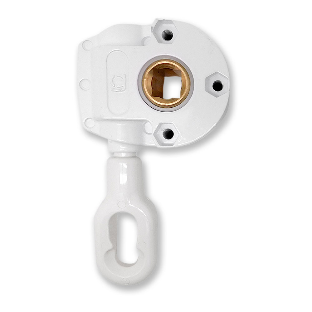 PARA ENROLLAR EL TOLDO. CON CADA 7 VUELTAS A LA MANIVELA 1 VUELTA AL EJE. PERMITE ABRIR Y CERRAR LOS TOLDOS MEDIANTE LA MANIVELA TLD06. IDEAL PARA TOLDO RECTO. AGUJERO CUADRADO INTERIOR DE 14mm. MATERIAL ZAMAK. ACABADO BLANCO. DIMENSIONES 77x35x135mm.